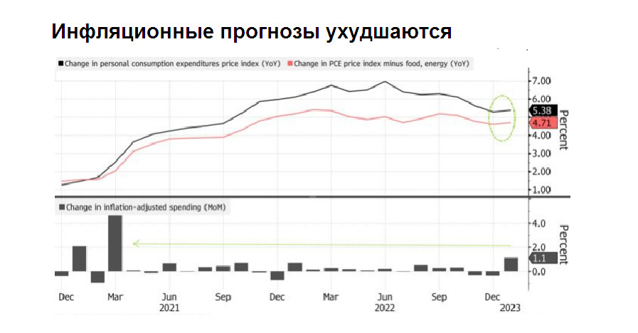 Банк Америки: трейдеры сливают акции и валюту США; о чем думают медведи?ИнстаФорекс - Instaforex, 2 года назад По словам стратегов Bank of America Corp., биржевые игроки избавляются от акций и наличности в пользу облигаций и активов развивающихся рынков из-за возросшего риска перед усилением агрессивности Федеральной резервной системы. Чего нам ждать от ФРС - оптимальный сценарий для трейдеров. Банк Америки: трейдеры сливают акции и валюту США; о чем думают медведи? По данным отчетов EPFR Global, фондовые активы и наличные средства в совокупности показывают еженедельный отток на 4,9 миллиарда долларов. В частности, глобальные фонды акций потеряли 7 миллиардов долларов оттока за неделю до 22 февраля, в то время как 3,8 миллиарда долларов утекли из наличного сектора. Зато облигации США выросли на те же $4,9 млрд восьмую неделю подряд, что стало самой длинной серией прибавок с ноября 2021 года. Фондовые индексы США падают три последние недели подряд, так как признаки жесткой инфляции усилили опасения, что ФРС может дольше добиваться повышения процентных ставок. Данные, опубликованные в пятницу, показали, что предпочтительные показатели инфляции ФРС в январе ускорились больше, чем ожидалось, в то время как потребительские расходы увеличились до максимумов с 2021 года. Первое квартальное падение корпоративной прибыли с 2020 года также снизило спрос на рисковые активы, и рыночные стратеги Уолл-стрит - в том числе и Morgan Stanley - предупредили, что в ближайшие несколько месяцев акции могут сильно упасть широким фронтом. Хартнетт из Bank of America повторил ранее озвученное мнение, что S&P 500 может упасть до 3800 пунктов к 8 марта, что означает снижение более чем на 5% по сравнению с последним закрытием. Мнение экономиста подкреплено ожиданиями рынков, что устойчивый рост в первой половине года совпадет с более высокими процентными ставками и приведет к более резкому замедлению экономического роста во второй половине. Стратеги Citigroup Inc. также заявили сегодня, 24 февраля, что рецессия в США все еще имеет возможность состояться. Интересно, что, идя в разрез с общим настроением игроков на рынках, частные клиенты BofA не стали выводить средства за границу, зато закупились активами на самую крупную сумму за последние восемь недель. Возможно, речь идет о долгосрочных пакетах инвестиций, однако и их имеет смысл покупать на дне медвежьего рынка, а не тогда, когда рецессия все еще «имеет риск случиться». В целом, акции США, несмотря на провал, выкупались третью неделю подряд в объеме недельных сделок на 9 миллиардов долларов. По секторам картина немного различна: фонды акций развивающихся рынков привлекли за неделю приток в размере 2,1 миллиарда долларов. Отток также возобновился из европейских фондов. Внутри США малая капитализация увеличились, в то время как фонды роста и крупной капитализации терпят убытки. Энергетика лидировала по секторальным притокам, а материалы и финансы продемонстрировали наибольший отток. Фьючерсы на акции США продолжили падать после выхода данных. ФРС продолжает пугать трейдеров американских активовИтак, что мы видим в общей картине? Важные для ФРС индикаторы инфляции неожиданно ускорились в январе, а потребительские расходы выросли после спада в конце года, что усилило давление на политиков, чтобы они продолжали повышать процентные ставки.Индекс цен на личное п
