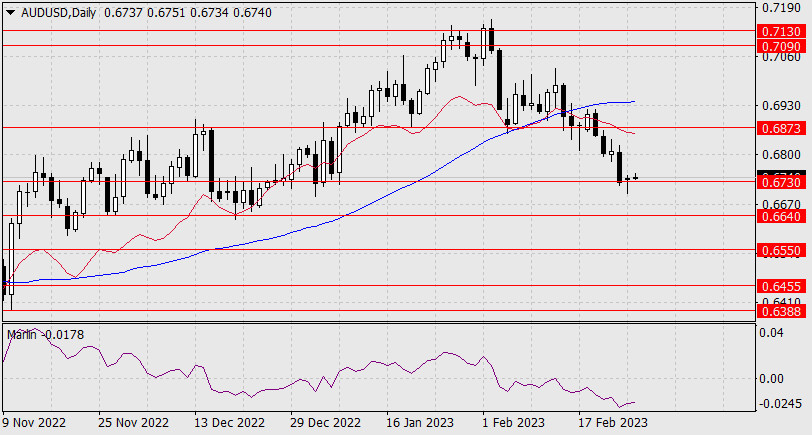 Прогноз по AUD/USD на 28 февраля 2023 годаИнстаФорекс - Instaforex, 2 года назад Вчерашний день австралийский доллар начал с бодрого снижения, но развить его, закрепиться под уровнем 0.6730 не смог. По факту мы теперь видим прокол поддержки, а в перспективном случае роста до 0.6873 даже ложный прокол. В текущих технических условиях нет признака того, что сопротивление 0.6873 может быть отработано, поэтому начавшуюся коррекцию рассмотрим на графике младшего таймфрейма.