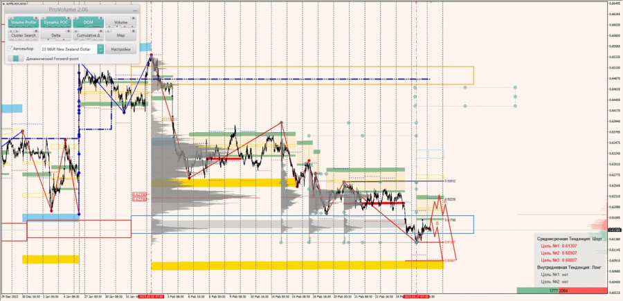 Среднесрочная тенденция: в шорт. Максимальное скопление объемов среднесрочной тенденции расположено в диапазоне по котировкам 0.62250-0.62350. В настоящий момент по паре совершаются инвестиционные операции ниже, указывая на силу продавцов.