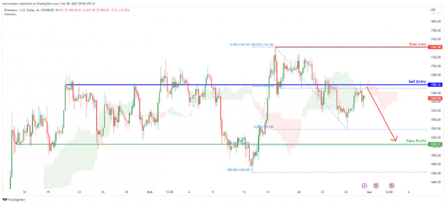 ETH/USD: возможно снижение до уровня свинг-лоу. Прогноз на 28 февраля 2023ИнстаФорекс - Instaforex, 2 года назад На 4-часовом графике пара ETH/USD пересекает облако Ишимоку, что указывает на возможный переход к медвежьей структуре рынка. Рекомендуется продавать на уровне 1658.36, где находятся 50% уровень коррекции Фибоначчи и уровень сопротивления. Стоп-лосс ордер может быть установлен на уровне 1742.50, соответствующем недавнему максимуму. Прибыль может быть зафиксирована на уровне 1525.12, где расположены поддержка и уровень коррекции Фибоначчи 78.6%. Торговая рекомендация Вход: 1658.36 Условия для входа: 50% уровень коррекции Фибоначчи и уровень сопротивления Тейк-профит: 1525.12 Условия для фиксации прибыли: предыдущий уровень свинг-лоу Стоп-лосс: 1742.50 Условия для активации ордера стоп-лосс: недавний максимум Материал предоставлен компанией InstaForex - www.instaforex.com |