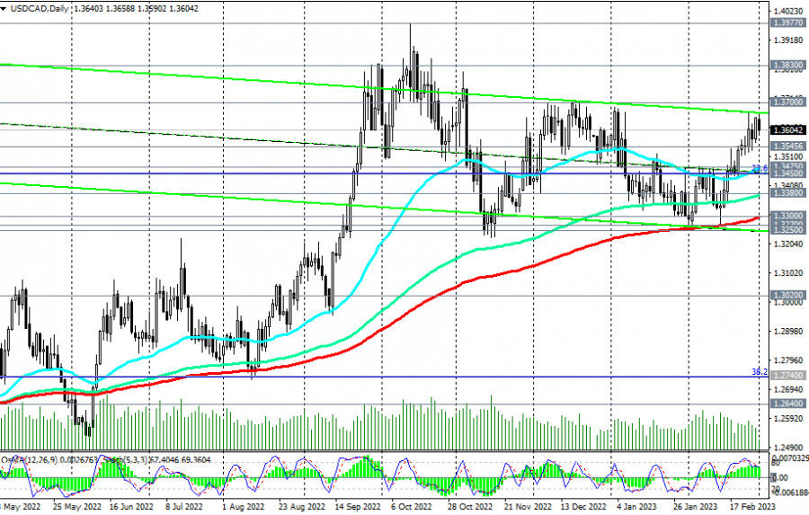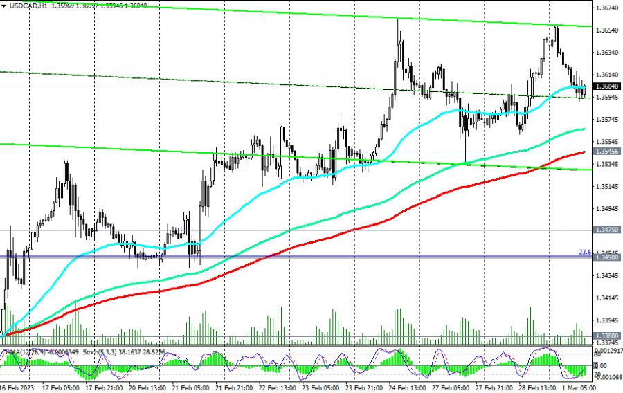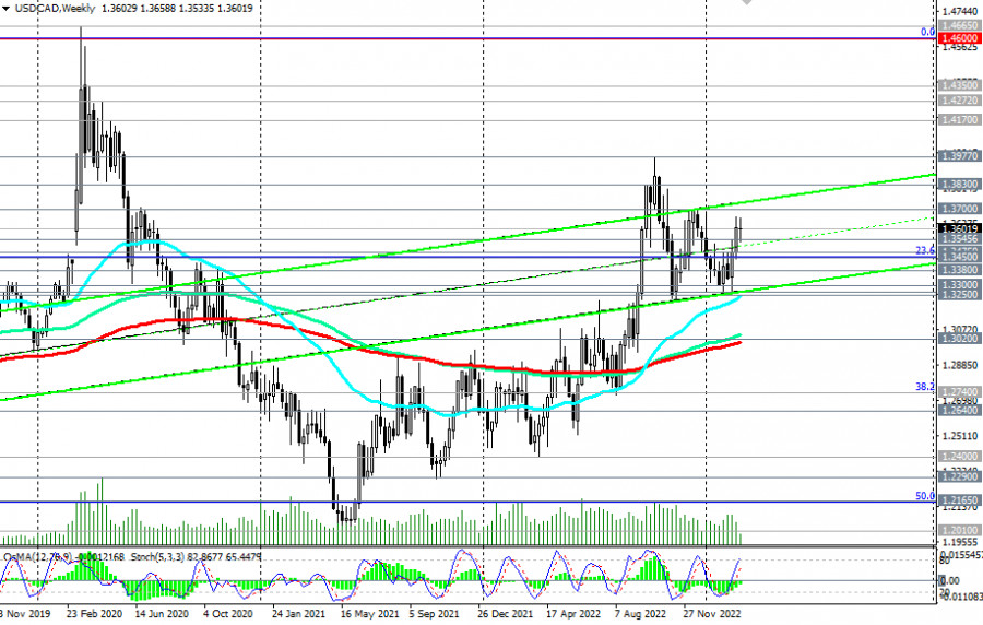USD/CAD: сценарии динамики на 01.03.2023ИнстаФорекс - Instaforex, 2 года назад Как мы отметили в сегодняшнем «Фундаментальном анализе», сегодня в центре внимания участников рынка, следящих за котировками канадского доллара, будет публикация (в 14:30) индекса деловой активности PMI в производственном секторе экономики Канады и в 15:00 (GMT) данных по деловой активности в промышленном секторе (от Института управления поставками ISM) американской экономики. С техничкой же точки зрения, находясь выше ключевых уровней поддержки 1.3380 (ЕМА144 на дневном графике), 1.3300 (ЕМА200 на дневном графике), 1.3250 (ЕМА50 на недельном графике), 1.3020 (ЕМА200 на недельном графике), USD/CAD остается в зоне долгосрочного бычьего рынка, а значит, предпочтительными, несмотря на сегодняшнюю коррекцию, по-прежнему остаются длинные позиции. Пробой локального уровня сопротивления 1.3665 (максимум февраля) подтвердит основной сценарий роста пары. В альтернативном сценарии пробой важных краткосрочных уровней поддержки 1.3545 (ЕМА200 на 1-часовом графике), 1.3475 (ЕМА200 на 4-часовом графике и ЕМА50 на дневном графике) станет сигналом для возобновления коротких позиций с целями на уровнях поддержки 1.3380, 1.3300, 1.3250. Пробой же уровня поддержки 1.3020 усугубит положение покупателей пары и повысит риски ее дальнейшего снижения в сторону ключевого уровня поддержки 1.2640 (ЕМА200, ЕМА144 на месячном графике), отделяющего долгосрочный бычий тренд USD/CAD от медвежьего. *) о важных событиях предстоящей недели см. в Важнейшие экономические события недели 27.02.2023 – 05.03.2023 **) об особенностях торговли USD/CAD см. в USD/CAD: валютная пара (характеристики, рекомендации) Уровни поддержки: 1.3545, 1.3500, 1.3475, 1.3450, 1.3400, 1.3380, 1.3300, 1.3270, 1.3250, 1.3200, 1.3100, 1.3020, 1.2990, 1.2740, 1.2600 Уровни сопротивления: 1.3665, 1.3700, 1.3800, 1.3830, 1.3900, 1.3970, 1.4000