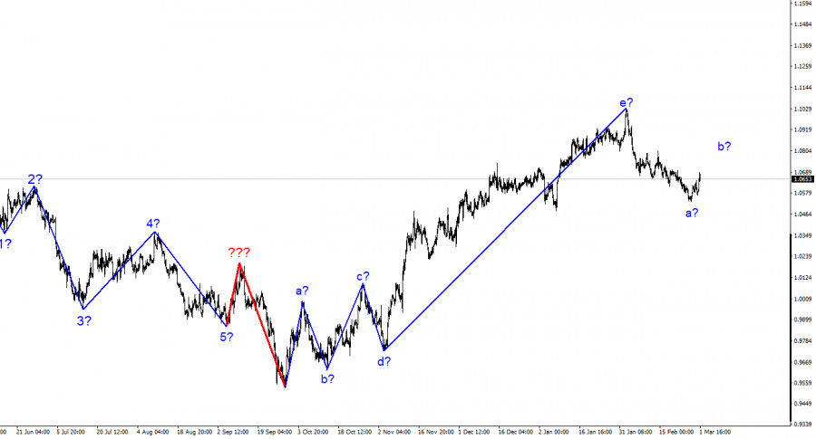 Анализ EUR/USD. 1 марта. Немецкая инфляция неприятно удивляет.ИнстаФорекс - Instaforex, 2 года назад Волновая разметка 4-часового графика для инструмента Евро/Доллар абсолютно не меняется в последнее время, что очень хорошо, так как мы понимаем, как может развиваться ситуация. Повышательный участок тренда принял ярко выраженный коррекционный(хотя его размер больше подходит для импульсного участка) вид. Мы получили структуру волн a-b-c-d-e, в которой волна e имеет гораздо более сложный вид, чем первые четыре волны. Если текущая волновая разметка верна, то построение этой структуры завершено, а волна e получилась гораздо протяженнее всех предыдущих волн. Нас ожидает построение минимум трех волн вниз, поэтому я по-прежнему ожидаю сильного снижения инструмента. Однако на несколько дней или недель инструмент может взять паузу. Отход котировок от достигнутых лоу в понедельник указывает на возможное начало волны 2 или b. Если это действительно так, то повышение котировок будет продолжаться некоторое время при любом новостном фоне. После завершения построения этой волны я в любом случае ожидаю нового достаточно сильного снижения, так как инструмент должен построить хотя бы три волны вниз и лишь потом можно будет размышлять о возможном новом повышательном участке. От инфляции в Евросоюзе сложно теперь ожидать позитива.Инструмент Евро/Доллар в среду повысился на 90 базовых пунктов. Таким образом, есть все основания предполагать, что началось построение восходящей волны b в составе нового понижательного участка тренда. Я ожидал, что она начнется в ближайшее время, но получилось так, что новостной фон оказал поддержку евровалюте и эти два события совпали. Это очень хорошо, так как конфликта между новостным фоном и волнами не случилось. Сегодня утром в Германии вышел индекс потребительских цен за февраль, который показал 8,7% годовых, как и месяцем ранее. Гармонизированный показатель и вовсе вырос до 9,3% годовых. Таким образом, инфляция в Германии снижалась лишь один месяц, а теперь вновь начала ускоряться. Из этого следует очень простой вывод: ЕЦБ будет продолжать повышать процентную ставку. На текущий момент она уже выросла до 3%, но мы отлично видим, что инфляция в крупнейших экономиках Евросоюза практически не снижается. Есть отдельный ряд стран, где индекс потребительских цен замедлился, но если в Германии, Франции или Испании он не замедляется должным образом, сложно рассчитывать, что европейский показатель будет продолжать падать. Все старания Европейского регулятора пока что выглядят напрасными. Рынок уже смирился с той мыслью, что в марте ставка снова вырастет на 50 базисных пунктов, но при текущих значениях инфляции и такого повышения очень мало, чтобы рассчитывать на сильное замедление роста цен. Таким образом, я делаю простой вывод: ставка ЕЦБ будет расти еще очень долго. Может быть, упадут темпы ее подъема, может быть, будут паузы, но она будет так или иначе расти. На данном этапе рынок уже отыграл ближайшее ужесточение денежно-кредитной политики, поэтому поддержка у евровалюты может быть достаточно слабой. Волновая разметка по-прежнему указывает на необходимость снижения. Общие выводы.Исходя из проведенного анализа, я делаю вывод, что построение восходящего участка тренда завершено. Таким образом, сейчас можно рассматривать продажи с це