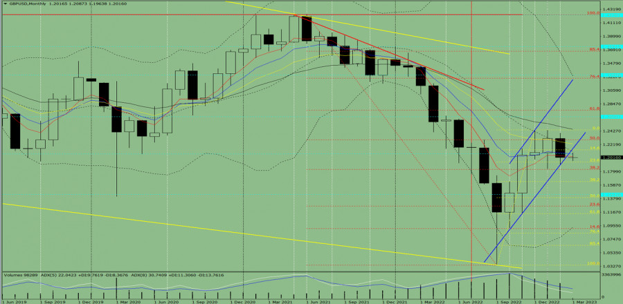 Технический анализ на март месяц 2023 года по валютной паре GBP/USDИнстаФорекс - Instaforex, 2 года назад Трендовый анализ. В марте цена от уровня 1.2017 (закрытие февральской месячной свечи), возможно, совершит движение вверх до цели 1.2289 – откатный уровень 50% (красная пунктирная линия). При тестировании этого уровня продолжение движения вверх с целью исторический уровень сопротивления 1.2650 (голубая пунктирная линия). Рис. 1 (месячный график). Индикаторный анализ: - индикаторный анализ – вверх; Вывод по комплексному анализу: возможна восходящая тенденция. Общий итог расчёта свечи валютной пары GBP/USD по месячному графику: цена, вероятней всего, будет иметь восходящую тенденцию с отсутствием первой нижней тени (первая неделя месяца – белая) у месячной белой свечи и отсутствием второй верхней тени (последняя неделя белая). Наиболее вероятный сценарий: цена от уровня 1.2017 (закрытие февральской месячной свечи), возможно, совершит движение вверх до цели 1.2289 – откатный уровень 50% (красная пунктирная линия). При тестировании этого уровня продолжение движения вверх с целью исторический уровень сопротивления 1.2650 (голубая пунктирная линия). Альтернативный сценарий: от уровня 1.2017 (закрытие февральской месячной свечи) движение вверх с целью 1.2289 – откатный уровень 50% (красная пунктирная линия). По достижении этого уровня возможно движение цены вниз. Материал предоставлен компанией InstaForex - www.instaforex.com |