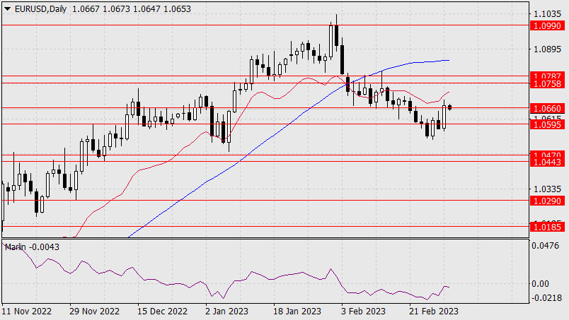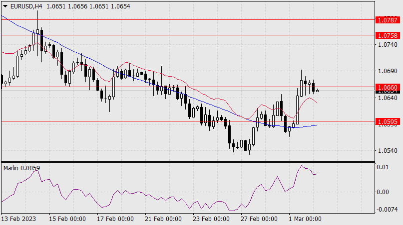 Прогноз по EUR/USD на 2 марта 2023 годаИнстаФорекс - Instaforex, 2 года назад Вчера евро, по сути дела, без фундаментальных и технических причин вырвался вверх на 90 пунктов, преодолев сразу два целевых сопротивления: 1.0595 и 1.0660. Объёмы торгов были наибольшими с 16-го февраля, вероятно, произошла охота на Стоп Лоссы продавцов, находящихся выше 1.0650. Если это так, то дальнейший рост евро выглядит совсем уж странным. С большой натяжкой можно предположить, что участники рынка ждут текущей весной большую скорость повышения ставки ЕЦБ, нежели её может показать ФРС, но, во-первых, такая версия пока не привлекает внимания в западной прессе, а во-вторых, разность ставок даже в отдалённой перспективе будет в пользу ФРС и доллара.