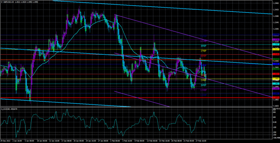 Обзор пары GBP/USD. 2 марта. «Качели» продолжаются, фунт нестабиленИнстаФорекс - Instaforex, 2 года назад Валютная пара GBP/USD в течение последних нескольких недель находится в режиме «качелей». Это хорошо видно на 4-часовом ТФ, а на 24-часовом ТФ у нас вообще флэт в канале шириной 500 пунктов. Таким образом, сейчас мы имеем дело с «качелями» внутри флэта старшего порядка. Ситуация не очень позитивная, потому что частые развороты пары очень сложно отрабатывать. На младших ТФ эти движения выглядят вполне рабочими, поэтому лучше торговать сейчас именно на младших таймфреймах. Однако не анализировать происходящее на старших мы тоже не можем. Нужно хотя бы понимать, что происходит. А происходит сейчас вот что. Пара скорректировалась на 50% после длительного нисходящего тренда и по факту замерла на месте. Нисходящая коррекция была слишком слабой, чтобы удовлетворить нас. Мы считаем, что евровалюта и фунт стерлингов должны продолжать падение против доллара. Если в случае с евро начинают появляться определенные факторы роста, то с фунтом таковых пока не наблюдается. В последних статьях мы уже говорили о том, что представители Банка Англии крайне редко комментируют монетарную политику и раскрывают планы регулятора. Время от времени, конечно, поступает подобного рода информация, но она носит достаточно редкий характер. Поэтому никто на рынке сейчас не понимает, чего ожидать от британского регулятора. Как следствие, фунт не растет, но при этом и не особо стремится к падению. В общем, ситуация практически патовая, и мы бы сказали, что сейчас больше зависит от технических факторов, потому что пара находится во флэте и из него еще нужно суметь выбраться. Впрочем, в ближайшее время мы наверняка получим какую-то информацию от Эндрю Бейли, который хоть и редко выступает, пессимизма ему явно не занимать. Инфляция в Великобритании по-прежнему не собирается снижаться теми темпами, что ждет регулятор, а Нагель из ЕЦБ вчера заявил, что падение цен на энергоносители практически никак не повлияло на замедление инфляции. Таким образом, может быть, мы напрасно ждем падения ИПЦ за счет падения цен на нефть и газ? Если так, то вернуть инфляцию к 2% будет еще сложнее, потому что даже при 4% ставки она замедлилась суммарно на целый 1%. Конечно, влияние изменения монетарной политики долгосрочное, но уже сейчас была бы видна ее реакция, если бы она вообще была. На 24-часовом ТФ пара не сумела пока покинуть облако Ишимоку, но линия Сенкоу Спан Б сама повышается. Такое закрепление ниже облака нельзя будет считать сигналом к падению. Ключевым выступает уровень 1,1841, который является нижней границей бокового канала. От Эндрю Бейли не ждут «ястребиной» риторики.На этой неделе должно состояться выступление председателя БА Эндрю Бейли, а ведущие аналитики мира уже начали его анализировать. К примеру, в Commerzbank считают, что господин Бейли не отличится «ястребиной» риторикой, а фунт из-за этого может опять попасть под распродажи. В банке считают, что британская экономика может показать меньшее замедление, чем прогнозировалось полгода назад, что в некоторой степени развяжет руки регулятору. Помимо этого, есть определенные надежды, связанные с подписанием соглашения между ЕС и Великобританией по «североирландскому протоколу». Однако этот протокол, по мнению экспертов, не вычеркнет мгновенн