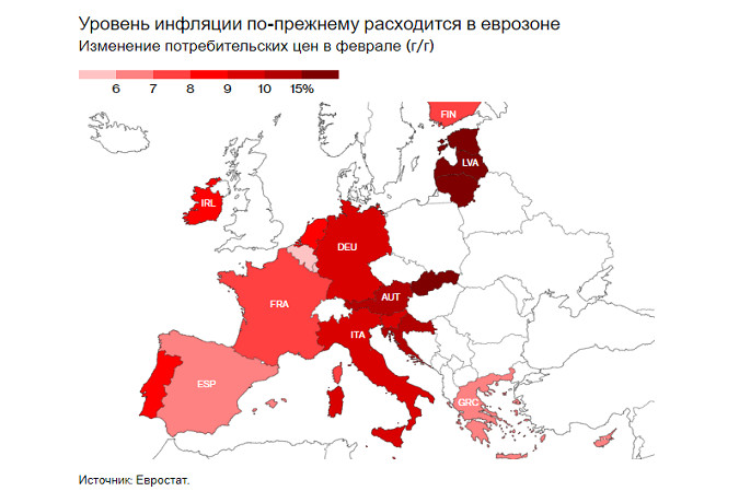 Инфляция в еврозоне опять вырослаИнстаФорекс - Instaforex, 2 года назад Инфляция в еврозоне замедлилась меньше, чем ожидалось, в то время как базовое ценовое давление выросло до нового рекорда, что усилило ожидания того, что Европейскому центральному банку придется еще больше увеличить стоимость заимствований. Из-за стоимости продуктов питания и услуг февральская цифра в 8,5% превысила медианную оценку в 8,3% в опросе экономистов, проведенном Bloomberg, и сравнима с ростом на 8,6% в январе. Базовая инфляция — ключевой момент для политиков — ускорилась до 5,6% с 5,3%. Цифры последовали за сильными данными по потребительским ценам в начале этой недели из Германии, Франции и Испании, которые уже запутали экономистов и побудили инвесторов сделать ставку на то, что депозитная ставка ЕЦБ — в настоящее время 2,5% — достигнет пика в 4%. Денежные рынки сохранили ставки на повышение ставок на 91 базисный пункт к маю, в то время как евро практически не изменился по отношению к доллару, торгуясь с понижением на 0,4%, до 1,0625. Всплеск цен на энергоносители в прошлом месяце продолжил снижаться после того, как мягкая зима ослабила кризис, развязанный войной на Украине. Эффект станет более заметным в марте, поскольку цены на нефть и природный газ взлетели после начала боевых действий. Политики, однако, не спускают глаз с мер, которые исключают такие изменчивые элементы. Они обеспокоены тем, что повышенный рост цен продолжит проникать в экономику и заставит рабочих добиваться большего повышения заработной платы. ЕЦБ почти наверняка повысит стоимость заимствований еще на 50 базисных пунктов через две недели. Что произойдёт дальше, является предметом усиливающихся дискуссий. Президент ЕЦБ Кристин Лагард ранее в четверг заявила испанскому телевидению, что, возможно, придется продолжить повышение, добавив, что инфляция не находится на «стабильном снижении». «Очень ясно, что мы сделаем все необходимое, чтобы вернуть инфляцию к 2%», — сказала Лагард. Президент Бундесбанка Йоахим Нагель заявил в среду, что могут потребоваться дальнейшие «значительные» шаги, чтобы взять инфляцию под контроль. Хотя глава Банка Италии Игнацио Виско согласился с тем, что ужесточение должно продолжаться, он призвал не заходить слишком далеко. Некоторые аналитики повысили свои ожидания в отношении пика стоимости заимствований в последние дни: и Goldman Sachs, и Deutsche Bank теперь прогнозируют, что ставка по депозитам достигнет 3,75%. Экономика была относительно устойчива к таким встречным ветрам. Опросы показывают улучшение настроения после того, как удалось избежать наихудшего сценария для этой зимы. Рынок труда также остается устойчивым, а безработица находится на исторически низком уровне. Это поощряет требования профсоюзов, которые стремятся компенсировать потерю покупательной способности, которую понесли их работники. Работники государственного сектора в Германии хотят повышения заработной платы на 10,5%, что намного выше того, что чиновники ЕЦБ считают совместимым со стабильностью цен. |