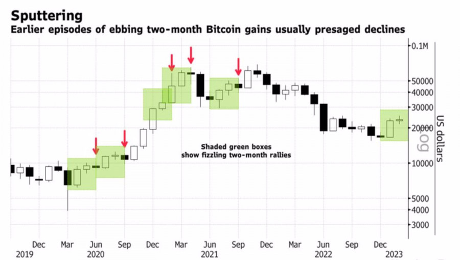 Биткойн предупреждали. Не поверил!ИнстаФорекс - Instaforex, 2 года назад Не для кого ни секрет, что на рынке криптоактивов правит Жадность. И даже криптозима 2022 не смогла инвесторов от нее отучить. Стоило BTCUSD прибавить 39% по итогам января, как толпа поклонников биткойна начала расти как снежный ком. Резко подскочил интерес к опционам на покупку с ценой исполнения в 30000 и выше. Открытый интерес на этом сегменте срочного рынка вырос в феврале до $9 млрд, что в последний раз наблюдалось, когда токен торговался по 45000. Речь идет о самой высокой скорости изменения за последние 14 дней в истории и рекордном показателе по отношению к капитализации. Однако одно дело хотеть, а другое, чтобы твои желания исполнялись. Жадность заставляла криптоактивы бежать впереди себя и разрывать связи с американскими фондовыми индексами. Бесконечно долго так продолжаться не могло. И час расплаты за самонадеянность пришел 3 марта, когда биткойн рухнул на 6%. А ведь «быков» по BTCUSD предупреждали! Замедление ралли в месячном исчислении с +39% в январе до +2% в феврале – плохая примета. Было всего пять случаев, когда такое случалось, и в четырех из них лидер сектора криптоактивов неизменно падал по итогам третьего месяца. Средняя просадка составляла 5,8%. Замедление ралли биткойна Жадность долгое время заставляла инвесторов закрывать глаза на внешний фон. А ведь он был крайне неблагоприятным для всего класса рискованных активов. Мало того что по цифровой индустрии продолжала распространяться зараза в связи с банкротством FTX, так еще и регулирующие органы США набросились на криптоинституты как голодный волк на кролика. В этом отношении сообщение криптоориентированного банка Silvergate об оценке своей способности выжить стало закономерным катализатором обвала BTCUSD. Акции банка потеряли половину своей стоимости, он являлся важным поставщиком ликвидности и серьезно пострадал от банкротства FTX. Масла в огонь подлила крипто-биржа Coinbase, сообщившая, что в целях безопасности не принимает и не осуществляет платежи в адрес Silvergate. Проблемы крипто-индустрии – далеко не единственный «медвежий» фактор для BTCUSD. На мой взгляд, снижение корреляции токена с фондовыми индексами США – временное явление, опять-таки обусловленное Жадностью и его спекулятивным характером. Со временем связи вернутся, и тот факт, что S&P 500 и весь рынок акций в целом находятся под серьезным давлением из-за монетарной рестрикции ФРС, перекрывает кислород биткойну. Действительно, если ставка по федеральным фондам вырастет до 6% и останется там надолго, это станет серьезным ударом по глобальному аппетиту к риску и заставит рынок криптоактивов вернуться к депрессивному состоянию, характерному для 2022. Технически на дневном графике BTCUSD имеет место реализация паттерна Акула. Если биткойну не удастся удержаться выше сформированной пивот-уровнями поддержки 21250-21450, возрастут риску продолжения пике к 17500. Пока токен торгуется ниже 23275, следует делать акцент на продажи. Материал предоставлен компанией InstaForex - www.instaforex.com |