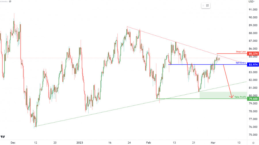 BCOUSD: ожидается формирование межвежьего импульсаИнстаФорекс - Instaforex, 2 года назад BCOUSD тестирует нисходящую линию сопротивления. Прорыв поддержки на отметке 83.97 может спровоцировать движение вниз к целевому уровню 79.60, где может быть установлен тейк-профит. Что касается стоп-лосс ордера, во избежание риска потери депозита рекомендуется установить его выше недавнего уровня свинг-хай 85.37. Материал предоставлен компанией InstaForex - www.instaforex.com |