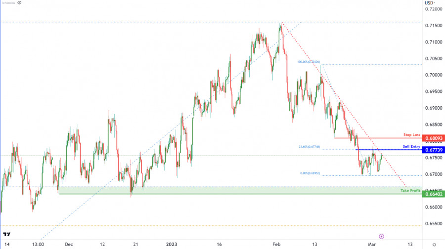 AUDUSD: возможен медвежий разворотИнстаФорекс - Instaforex, 2 года назад AUDUSD тестирует мощное сопротивление на уровне 0.6773, соответствующем 23% уровню коррекции Фибоначчи и нисходящему сопротивлению. Если цена развернется, она упадет до основной поддержки на отметке 0.6640, которая соответствует уровню свинг-лоу. Материал предоставлен компанией InstaForex - www.instaforex.com |