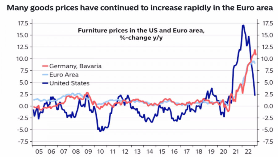 Доллар финиширует первымИнстаФорекс - Instaforex, 2 года назад В то время как EURUSD пытает удержаться выше 1,06, ожидая крайне важную статистику по рынку труда США за февраль, инвесторы и центробанки постепенно приходят к единому мнению. Деривативы давно уже видят пик ставки по депозитам ЕЦБ на уровне 4%, член Управляющего совета Пьер Вунш отмечает, что этот прогноз может оказаться точным, если базовое ценовое давление в еврозоне останется повышенным. О той же отметке говорят Barclays, Bank of America, BNP Paribas, Danske Bank и Morgan Stanley. Цифра красивая, рекордная в истории Европейского центробанка, но достаточно ли будет ее достижения для восстановления восходящего тренда по основной валютной паре? Morgan Stanley одним из последних среди крупных банков повысил прогноз потолка ставки по депозитам с 3,25% до 4%, ссылаясь на то, что базовая инфляция в еврозоне, вероятнее всего, достигнет пика позднее, чем ожидалось. И сам этот пик окажется выше. ЕЦБ поднимет стоимость заимствований на 50 б.п. в марте и мае после чего перейдет на меньший шаг – в 25 б.п. Таким образом, ужесточение денежно-кредитной политики будет продолжаться до осени, что обусловлено нежеланием европейской инфляции замедляться. Если в США цены на товары уже это делают, то в еврозоне и Германии наблюдается иная картина. Динамика цен на товары в США, еврозоне и Германии В Штатах все может закончиться гораздо раньше. До потолка ставке по федеральным фондам осталось не так уж много – 75 б.п., а если данные за февраль покажут, что январская горячая статистика была лишь временным всплеском, связанным с благоприятной погодой, стоимость заимствований и вовсе туда не дойдет. Остановится на отметке 5,25%, как и предполагал декабрьский прогноз FOMC. О том, что релизы данных по американской занятости 10 марта и инфляции 14 марта крайне важны для понимания того, что будет делать ФРС, говорили ее представители Кристофер Уоллер и Рафаэль Бостик. Сильная статистика – Центробанк дальше повышает ставки, слабая – останавливается и пытается оценить происходящее. На карту поставлено очень многое, включая силу доллара, рост доходности казначейских облигаций и падение фондовых индексов США. Точно также как динамика этих активов резко изменилась в феврале, она может поменяться в марте. Неудивительно, что в таких условиях EURUSD начинает грустить в консолидации, мечась от ее верхней к нижней границе и наоборот как тигр в клетке. И лишь на исходе недели к 3 марта к основной валютной паре вернулось спокойствие. Однако не стоит обманывать себя, это спокойствие перед бурей. Технически формирование внутреннего бара с широким диапазоном на дневном графике EURUSD позволяет использовать пробойную стратегию. Речь идет о постановке отложенных ордеров на покупку от уровня 1,0675 и на продажу от 1,0575. Тем не менее риски ложных прорывов до выхода в свет статистики по американской занятости за февраль велики. С другой стороны, хорошее движение может возникнуть и до важного релиза. Кто не рискует, тот не пьет шампанского. Материал предоставлен компанией InstaForex - www.instaforex.com |