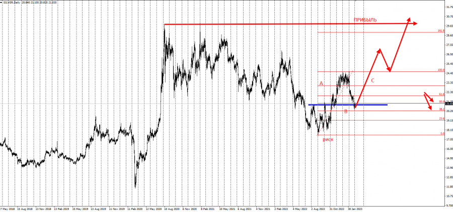 Инвестиционная торговая идея. Самое время покупать серебро!ИнстаФорекс - Instaforex, 2 года назад Добрый день, уважаемые трейдеры! Представляю вашему вниманию торговую идею по серебру. Итак, напоминаем, что после пандемии серебро находится в формировании годовой трёхволновой структуры с отличным потенциалом на рост выше 30$: Но внутри этой большой логовой структуры есть трёхволновка меньшего масштаба, от которой можно поработать на повышение по следующей схеме: Фактически имеем трёхволновую структуру "АВС", где волной "А выступает лонговая инициатива конца прошлого года. |