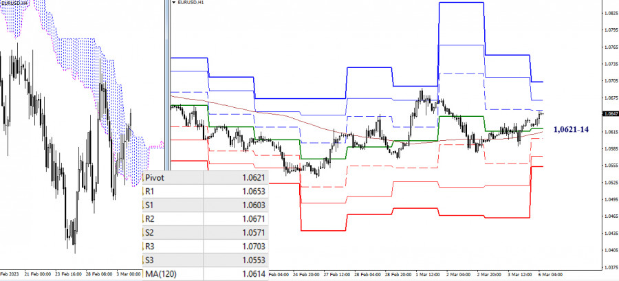 EUR/USD и GBP/USD 6 марта – технический анализ ситуацииИнстаФорекс - Instaforex, 2 года назад EUR/USD Старшие таймфреймы Притяжение и влияние месячного уровня (1,0579) всю прошлую неделю удерживало ситуацию от развития. В результате февральское медвежье настроение не сумело в первые дни марта найти поддержку и подтверждение. В настоящий момент пара работает выше месячной поддержки, на сторону игроков на повышение перешел дневной краткосрочный тренд (1,0612). В случае дальнейшего усиления бычьих настроений в работу вступит достаточно широкая зона сопротивлений, состоящая их уровней всех старших таймов – дневного, недельного, месячного (1,0724 – 1,0783 – 1,0855 – 1,0903). Закрепление выше зоны и обновление максимального экстремума (1,1033) позволит рассмотреть новые перспективы и возможности для игроков на повышение. Выход пары из дневного облака в медвежью зону и преодоление месячной поддержки 1,0579 сформирует новую понижательную цель на пробой и сместит внимание на такие рубежи, как 1,0461 (недельный Фибо Киджун) и 1,0284 – 1,0320 (нижняя граница недельного облака + недельный среднесрочный тренд + месячный краткосрочный тренд). Н4 – Н1 На младших временных интервалах в момент анализа пара находится выше ключевых уровней, которые сегодня объединяют свои усилия в узком диапазоне 1,0621-14 (центральный Пивот уровень дня + недельная долгосрочная тенденция). Нахождение пары выше ключевых уровней отдаёт преимущество игрокам на повышение. Их ориентиры для продолжения подъёма сегодня внутри дня расположены на 1,0653 – 1,0671 – 1,0703 (классические Пивот уровни). Потеря ключевых уровней изменит действующий баланс сил младших временных интервалов. В этом случае интерес будет направлен на понижательные ориентиры – поддержки классических Пивот уровней (1,0603 – 1,0571 – 1,0553). *** GBP/USD Старшие таймфреймы На дневном и недельном таймфреймах прошлая неделя сохранила и подтвердила консолидацию. Неопределённость продолжает доминировать. Центром притяжения по-прежнему остаётся дневной краткосрочный тренд (1,2032). Для изменения ситуации пара должна покинуть зону консолидации. Изменения для игроков на понижение, возможно, начнутся при надёжном закреплении ниже месячной поддержки 1,1842. Для продвижения и восстановления позиций игрокам на повышение предстоит в сложившихся условиях преодолеть уровни сопротивления различных временных интервалов, наибольшее значение будут иметь рубежи 1,2100 – 1,2180 – 1,2302. Н4 – Н1 На младших таймах пара сейчас в очередной раз поднялась выше ключевых уровней, которые сегодня находятся на рубеже 1,2009-16 (центральный Пивот уровень дня + недельная долгосрочная тенденция). Ориентиры для продолжения подъёма внутри дня в настоящий момент можно отметить на 1,2079 – 1,2116 – 1,2186 (сопротивления классических Пивот уровней). Поддержки классических Пивот уровней сейчас расположены на 1,1972 – 1,1902 – 1,1865, актуальность к ним вернётся после очередной смены приоритетов и надёжного закрепления под ключевыми уровнями (1,2009-16). *** При техническом анализе ситуации использованы: старшие таймфреймы – Ichimoku Kinko Hyo (9.26.52) + уровни Фибо Киджун; младшие таймфреймы – Н1 – Pivot Points (классические) + Moving Avarage 120 (недельная долгосрочная тенденция). Материал предоставлен компанией InstaForex - www.instaforex.com |