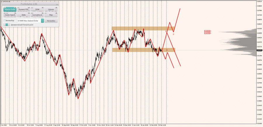 Долгосрочная тенденция: временная неопределённость. Максимальное скопление объемов текущего контракта расположено в диапазоне по котировкам 0.64700-0.65000. В настоящий момент по паре совершаются инвестиционные операции ниже, указывая на силу продавцов.