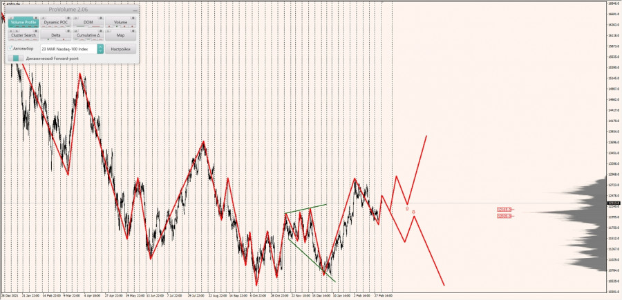 Долгосрочная тенденция: в лонг. Максимальное скопление объемов текущего контракта расположено в диапазоне по котировкам 12020.0-12165.0. В настоящий момент по Nasdaq совершаются инвестиционные операции выше, указывая на силу покупателей.