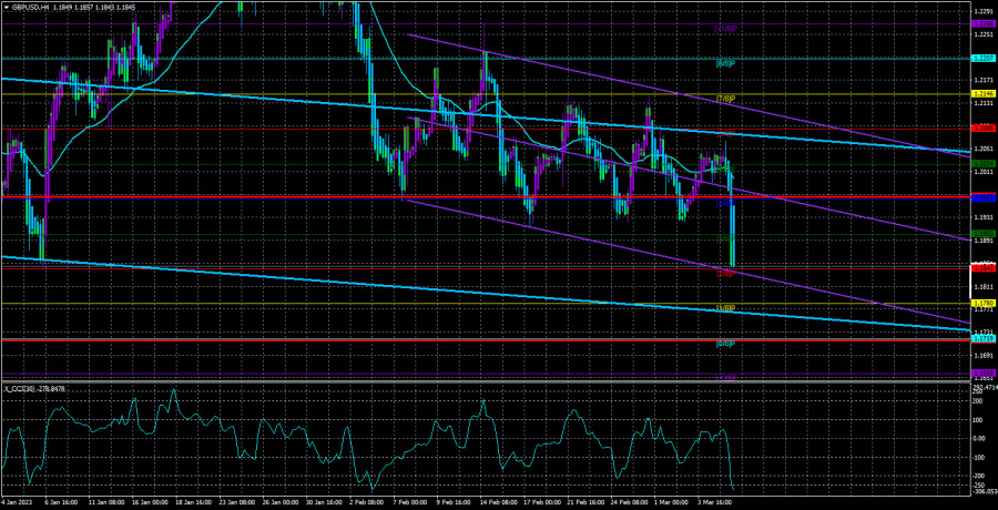 Обзор пары GBP/USD. 8 марта. Обвал британского фунта. Логичный и ожидаемый.ИнстаФорекс - Instaforex, 2 года назад Валютная пара GBP/USD в течение вторника также начала обвальное падение, которого мало кто ожидал. Мы также считали, что падение будет продолжаться в прежнем режиме, то есть не в слишком высоком темпе. В течение нескольких недель пара находилась в режиме «качели», но вчера все же сумела преодолеть уровень 1,1932, который выступал нижней границей бокового канала, в котором «качели» и реализовывались. Если посмотреть внимательно на иллюстрацию выше, то очень хорошо заметно, что даже в условиях флэта каждый последующий пик цены был ниже предыдущего. Цена минимум трижды пыталась преодолеть уровень 1,1932, и каждый раз отскакивала от него на меньшее расстояние. Поэтому мы постоянно и говорили, что ожидаем возобновления падения пары. К этому можно добавить, что британский фунт остается перекупленным, так как вырос на 2100 пунктов за три месяца в конце прошлого года. Британский фунт зачастую рос безосновательно и скорректировался на 50% от двухлетнего нисходящего тренда слишком быстро. Факторов, которые могли бы поддержать рост фунта, сейчас немного, а те, которые поддерживали его ранее, уже давно отработаны трейдерами. Поэтому новое падение британской валюты напрашивалось. Вопрос был лишь в том, когда оно начнется. Мы не ожидали, что оно начнется вчера, хотя полностью и не исключали такой вариант. Джером Пауэлл в Конгрессе не сказал ничего принципиально нового. Конечно, когда глава ФРС открыто заявляет о готовности вновь нарастить темпы ужесточения монетарной политики, это всегда оказывает влияние на настроение участников рынка, но, как мы уже говорили ранее, к этому все шло уже давным-давно. Если рынок этого не понимал, тогда все логично, потому что вчера он получил основания для новых покупок доллара, что называется, «прямо в лоб». На 24-часовом ТФ пара опустилась к важному уровню Фибоначчи 38,2% – 1,1842. Уверенное преодоление этого уровня еще сильнее повысит вероятность продолжения падения пары, что, с нашей точки зрения, будет абсолютно логично. Также около уровня 1,1842 некоторое время пролегала линия Сенкоу Спан Б, которая лишь несколько дней назад сама ушла дальше вверх. Поэтому преодоление 1,1842 откроет дорогу медведям дальше вниз. Цели тогда будут располагаться в диапазоне между 1,13 и 1,15. На что может теперь надеяться британский фунт?На этой неделе в Великобритании будет лишь несколько относительно важных публикаций. Мы говорим, конечно же, об отчетах по ВВП и промышленному производству, которые станут доступными в пятницу. Отношение к ним такое же, как к выступлениям Джерома Пауэлла в Конгрессе. Если не случится «сюрприза» или откровенной неожиданности, то реакции на них, скорее всего, не последует. Дело в том, что отчет по ВВП будет не квартальным, а месячным, а отчет по промышленному производству уже довольно долго не интересует трейдеров. От американских событий и отчетов британскому фунту сейчас тоже сложно ожидать поддержки. Вряд ли сегодня Пауэлл, выступая в том же Конгрессе, но перед другим комитетом, изменит свою риторику на 180 градусов. А что еще нас ждет на этой неделе? Только пятничные отчеты по Нонфармам и безработице. Безработица вряд ли вырастет или вряд ли вырастет сильно. А увеличение на 0,1% не послужит основанием для распродаж до