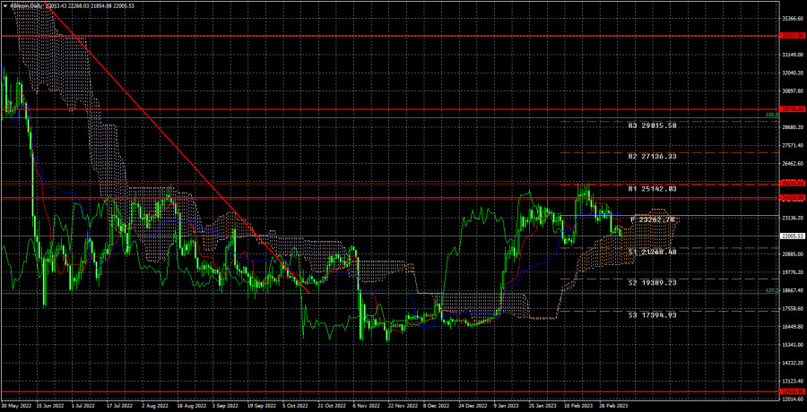 Выступление Пауэлла не обрушило биткоин, но...ИнстаФорекс - Instaforex, 2 года назад Криптовалюта биткоин продолжает падение после того, как достигла уровня 25 211$ и отскочила от него. Напомним, что мы поддерживаем вариант с новым падением первой криптовалюты и считаем, что она по-прежнему находится внутри бокового канала 15 500$-25 211$. Так как верхняя граница этого канала не была преодолена, то наиболее логичным исходом будет новое падение в направлении нижней границы. И пока что мы видим исполнение именно этого сценария. На 24-часовом ТФ криптовалюта уже вошла в облако Ишимоку и располагается ниже критической линии Киджун-сен. Таким образом, минимальной целью выступает линия Сенкоу Спан Б, которая пролегает в данное время на уровне 20 274$. Фундаментальный фон, который мог бы заинтересовать криптотрейдеров, начал появляться на этой неделе лишь во вторник. Следует помнить, что далеко не все данные, которые «перевариваются» валютным рынком, интересны криптовалютному. Однако выступление Пауэлла – это всегда важно, и важно для всех. Вчера глава ФРС сделал сразу несколько громких заявлений, о которых участники всех рынков могли бы догадаться сами. Но одно дело догадаться или предполагать, а другое – когда глава ФРС открыто об этом заявляет. А заявил он следующее. Инфляция может оставаться высокой еще долгое время, ФРС не собирается отступать от намеченных целей по обеспечению ценовой стабильности, ставку придется повышать дольше, чем предполагалось ранее, а темпы ее роста могут снова вырасти. Вряд ли стоит лишний раз обращать внимание на то, что все сказанное Пауэллом, это «ястребиные» факторы. А для биткоина и любых цифровых активов они как нож в сердце. Биткоин еще отреагировал очень хорошо на слова Пауэлла. Он вполне мог бы обвалиться вниз по примеру евро или фунта. Вместо этого он потерял всего лишь несколько сотен долларов стоимости. Однако он падает уже несколько недель, и пока что не видно, чтобы этот процесс собирал завершаться. Таким образом, может быть вчера «биток» и удержался от обвала, но это не означает, что он не будет продолжать падение. Как мы уже не раз говорили, факторов роста у первой криптовалюты сейчас нет. Есть лишь эфемерные основания покупать, которые с легкостью разрушаются суровой действительностью и фундаментальным фоном. На 24-часовом таймфрейме котировки «битка» не сумели преодолеть вспомогательный уровень 25 211$. Если он все же не устоит, то «бычий» тренд будет признан начавшимся, а первой целью будет выступать уровень 29 750$. Если взглянуть беспристрастно на текущую картину положения вещей, то мы по-прежнему считаем, что падение к 15 500$ более вероятно. Ближайшими целями выступают уровни 20 400$-20 274$. Материал предоставлен компанией InstaForex - www.instaforex.com |