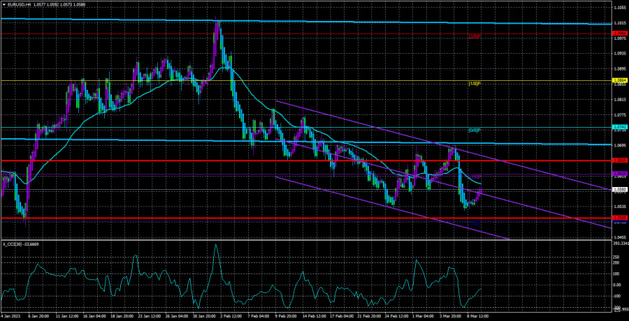 Обзор пары EUR/USD. 10 марта. Джером Пауэлл шокировал рынок, но ненадолго.ИнстаФорекс - Instaforex, 2 года назад Валютная пара EUR/USD в течение среды и четверга торговалась уже гораздо более спокойно. Первоначальный эффект от выступления Пауэлла быстро спал и теперь совершенно непонятно, что будет дальше. С одной стороны, пара закрепилась ниже скользящей средней линии, что открывает перед неплохие перспективы для дальнейшего падения. С другой стороны, только за последнюю неделю пара преодолела мувинг раз 5, поэтому очередное закрепление ниже скользящей средней линии не значит ничего. Таким образом, можно лишь сказать, что в данное время рынок МОЖЕТ продолжить снижение, но на самом деле многое теперь будет зависеть от американской статистики, которая выйдет сегодня. О ней мы еще поговорим ниже. Второе выступление Пауэлла в Конгрессе США не дало никакой новой информации, что было предсказуемо. На самом деле мы удивлены тем, как отреагировал рынок на выступление главы ФРС во вторник, потому что все озвученные тезисы можно было легко и просто предугадать. Мы неоднократно говорили, что ставку ФРС нужно повышать минимум до 6%, а все разговоры о «реакции регулятора по отчетам» и так далее, не более, чем «хорошая мина при плохой игре». Таким образом, для нас не стало чем-то удивительным заявление Пауэлла о необходимости вновь разогнать темпы ужесточения монетарной политики. ФРС с самого начала показывала четкое намерение вернуть ставку к 2%. Причем не в перспективе 5-10 лет, а в максимально сжатые сроки. Если бы состояние американской экономики было близким к рецессионному, тогда разговор был бы совершенно иной. Но из месяца в месяц поступают очень неплохие макроэкономические данные, поэтому ФедРезерв имеет все необходимые возможности ужесточать монетарную политику, как необходимо. Доллар прогнозируемо вырос после заявлений Пауэлла, а мы считаем, что он должен продолжать расти в среднесрочной перспективе. На 24-часовом ТФ пара все-таки закрепилась ниже облака Ишимоку, а также ниже уровня 38,2% по Фибоначчи. Таким образом, вероятность дальнейшего падения котировок выросла, мы получили еще один сигнал к продажам. Если сегодня американские отчеты не подведут, то пара может опуститься еще на 100 пунктов вниз. Нонфармы и безработица в США не изменят настрой рынка.На самом деле мы считаем, что вопрос о повышении ставки в марте на 0,5% уже практически решен. Джером Пауэлл крайне редко говорит не по существу и делает необоснованные заявления. Если он сказал, что вероятность повышения темпов роста ставки присутствует, значит регулятор готовится именно к этому. Его спич в среду, когда он попытался «отойти назад» уже не имел значения и никто Пауэллу не поверил. В данное время вероятность повышения ставки на 0,5% составляет уже больше 50%. И даже сегодняшние отчеты(с нашей точки зрения) не изменят этой веры рынка. Давайте проанализируем. Даже если сегодня Нонфармы окажутся слабыми, а безработица вырастет, будет ли это означать то, что ФРС откажется от планов о повышении ставки на 0,5%? Мы считаем, что нет. Здесь следует учитывать даже не один отдельно взятый отчет, а общую динамику и тенденцию. Нонфармы из месяца в месяц выходят на очень хорошем уровне. В отличие от других экспертов, мы неоднократно говорили, что +200-300 новых рабочих мест в месяц – это отличное значение. Таки