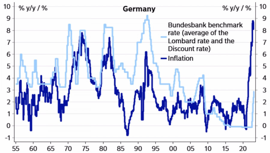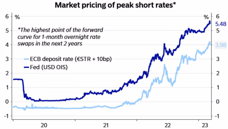 Евро никто не остановитИнстаФорекс - Instaforex, 2 года назад Сильная экономика – сильная валюта. Чем лучше выходит макростатистика по той или иной стране, тем выше поднимается предполагаемый потолок ставки центробанка. В еврозоне он превысил 4%, в США – 5,5%, что позволяет как евро, так и американскому доллару чувствовать себя великолепно, уводя EURUSD в консолидацию. И если в краткосрочной перспективе предполагаемые пики стоимости заимствований сложно будет превысить, то на средне- и долгосрочном горизонте инвестирования все возможно. Динамика предполагаемых пиков ставок ФРС и ЕЦБ Согласно консенсус-прогнозу экспертов Bloomberg, ставка по депозитам ЕЦБ достигнет отметки 3,75%. После ее повышения на 50 б.п на мартовском заседании Европейский центробанк замедлит шаг до 25 б.п и закончит цикл ужесточения денежно-кредитной политики в июле. Goldman Sachs и Deutsche Bank считают, что это произойдет в июне, а Morgan Stanley и Barclays видят стоимость заимствований на более высоком уровне – 4%. На самом деле если экономика еврозоны и дальше будет проявлять поразительную устойчивость к самой агрессивной монетарной рестрикции ЕЦБ за всю историю его существования, то во-первых, инфляция нарисует новый пик, а во-вторых, ставка по депозитам поднимется выше 4%. В прошлом предшественник нынешнего Европейского регулятора – Бундесбанк всегда поднимал ставки выше пика базовой инфляции. В настоящий момент в еврозоне он находится на рекордной отметке 5,6%. Динамика ставки Бундесбанка и немецкой инфляции По мнению члена Управляющего совета Изабель Шнабель, передача денежно-кредитной политики может быть слабее, чем в предыдущих эпизодах. То бишь совокупный спрос проявляет меньшую чувствительность к повышению ставок. Отсюда и большая устойчивость экономики и более высокая инфляция, чем предполагалось. Это означает, что дверь для продолжения цикла монетарной рестрикции в еврозоне открыта, что является хорошей новостью для EURUSD. После смешанной статистики по американскому рынку труда, где занятость в феврале выросла на 311 тыс, однако уровень безработицы повысился с 3,4% до 3,6%, а средняя заработная плата замедлилась до 0,2% м/м, доллару США сложно будет рассчитывать на поддержку со стороны инфляции. Эксперты Bloomberg прогнозируют замедление потребительских цен с 6,4% до 6%, базового индикатора – с 5,6% до 5,5%. Такая динамика вряд ли заставит срочный рынок повысить предполагаемый потолок ставки по федеральным фондам и станет очередным ударом по «медведям» по EURUSD. Вместе с тем, рассчитывать на то, что доллар США сложит крылья не приходится. Без боя он сдаваться не намерен, ведь ФРС точно также как и Бундесбанк в предыдущих циклах ужесточения денежно-кредитной политики поднимала ставки выше пика базовой инфляции. Технически возвращение EURUSD в диапазон справедливой стоимости 1,0585-1,074 – хороший знак для «быков». Покупки от 1,0575 принесли результат, и сейчас имеет смысл держать лонги и наращивать их на прорыве сопротивлений на 1,0685 и 1,071. Материал предоставлен компанией InstaForex - www.instaforex.com |