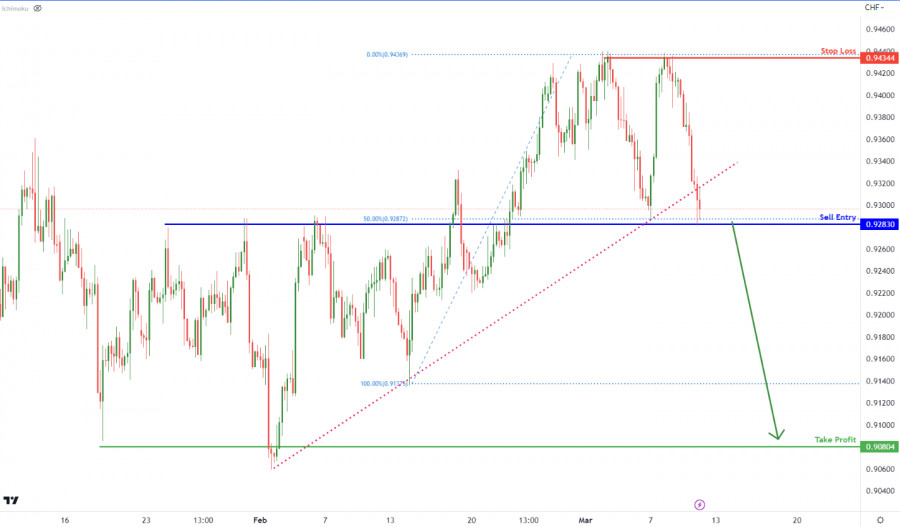 USD/CHF, H4: возможен пробой вниз после преодоления линии трендаИнстаФорекс - Instaforex, 2 года назад Цена тестирует ключевой уровень поддержки на отметке 0,9283, которая совпадает с поддержкой перекрытия и уровнем коррекции Фибоначчи 50%. В случае пробоя этого уровня цена может опуститься к локальному минимуму на отметке 0,9080. Стоит отметить, что цена уже пробила восходящую линию поддержки, которая превратилась в сопротивление, что позволяет предположить смену импульса на медвежий. Материал предоставлен компанией InstaForex - www.instaforex.com |