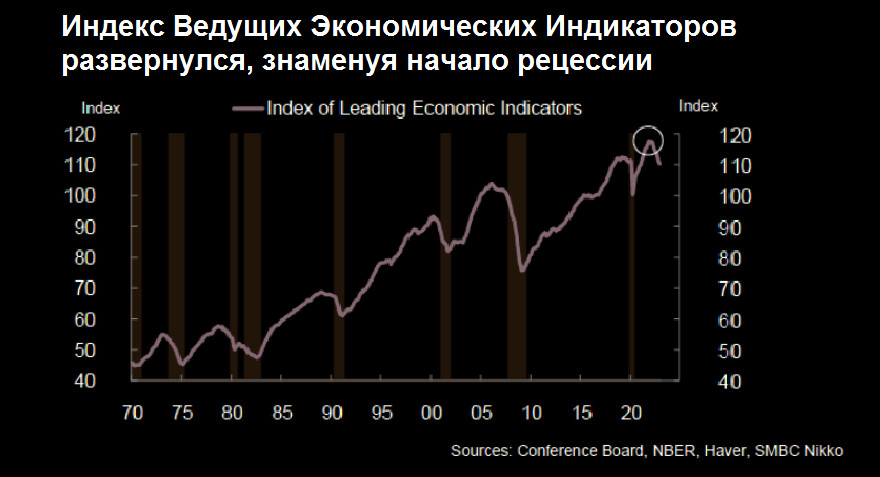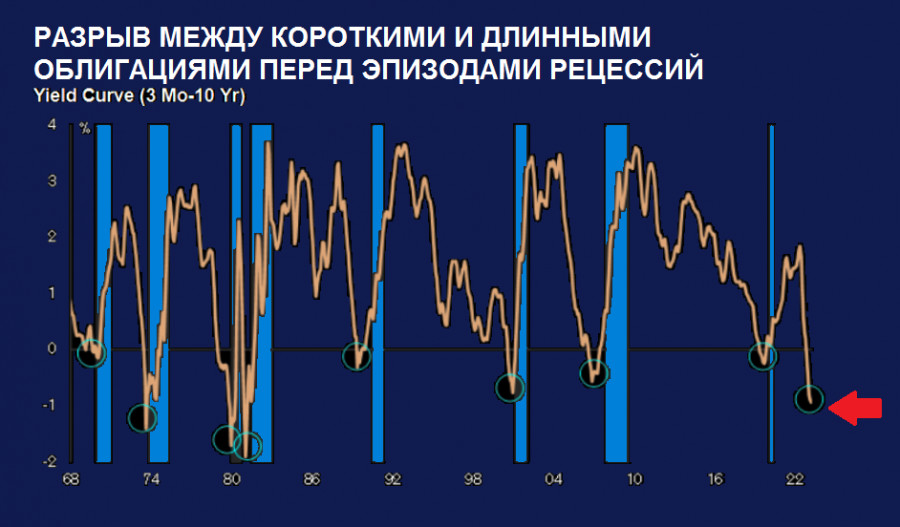 Рецессия и ее индикаторы – что мы знаем из графиков?ИнстаФорекс - Instaforex, 2 года назад После сокрушения надежд быков рынкам стало ясно, что ФРС полностью зависима в своих действиях от рыночных данных. Теперь многие трейдеры предпочитают сосредоточиться на инфляции и возможной рецессии. Однако здесь мнения неизбежно расходятся. Рецессия и ее индикаторы – что мы знаем из графиков?Аналитикам инвестфондов хотелось бы верить, что к июню мы выйдем на восстановление позиций, поскольку пессимистичные рынки не дают зарабатывать на комиссии, тогда как ФРС, видимо, рассчитывает хотя бы сохранить нынешние ставки до июня в самом благоприятном сценарии. Давайте посмотрим, что нам говорят цифры и графики. На самом деле существует множество достаточно приемлемых индикаторов рецессии, если вы хотите быть во всеоружии до того, как все посыпется. Проблема, как мы все понимаем, в сроках. Даже после того, как вспыхнут сигналы тревоги (что уже периодически происходит с ноября 2021 года), может пройти некоторое время, прежде чем рост замедлится. Иногда рынки даже показывают ложные бычьи отскоки. Это путает трейдеров. Так что давайте начнем с кривой доходности, самого пугающего индикатора для биржевых игроков на данный момент. Итак, если вы бегло взглянете на среднегодовую доходность облигаций начиная с 1960 года, вы увидите, что спред между доходностью трехмесячных и 10-летних облигаций был стабильным. Но в каждом случае за последние полвека рецессия не начиналась, пока кривая доходности не становилась круче. Обычно к началу рецессии разрыв между ними не рос, однако были и исключения, когда разрыв предварял рецессию. Если экстраполировать ситуацию на текущие фьючерсы, можно отчетливо увидеть, что, скорее всего, кривая еще немного перевернется, а затем останется перевернутой в следующем году и на протяжении большей части 2025 года. Мы также видим, что к моменту начала рецессии кривая практически восстанавливалась до равной доходности между двумя видами облигаций, прежде чем разрыв начинал резко увеличиваться. О чем говорят нам эти цифры? Очевидно, это явно подразумевает минимальный риск рецессии в этом году. Как ни удивительно для нас, учитывая, что инфляция по-прежнему неприятно высока. По-видимому, инфляция собирается продержаться до 2025 года, на который, судя по графику, следует назначить наступление рецессии. При этом в восьмидесятых мы видим немного отличную картину – из-за разницы в реакции ФРС, но главным фактором был уровень инфляции. В частности, при высокой инфляции рецессии начинались за 5 месяцев до наступления неинверсивности кривой, тогда как при низкой инфляции рецессии наступали через 5 месяцев после. Используя в качестве ориентира период высокой инфляции, фьючерсы указывают на начало рецессии в августе 2025 года, примерно через 2,5 года с сегодняшнего дня. Эта версия также подразумевает что-то вроде сценария без приземления, в котором экономика продолжает нагреваться, вызывая рост цен, прежде чем начнется рецессия. Достаточно болезненный сценарий, потому как 2,5 года высокой инфляции не выдержит ни одна экономика. Поэтому сама по себе кривая доходности не может использоваться как достоверный индикатор. ФРС явно предпримет все возможное, чтобы снизить инфляцию до конца 2024 года. Поэтому имеет смысл рассмотреть другие индикаторы. Например, 
