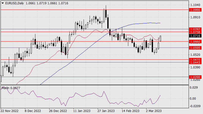 Прогноз по EUR/USD на 13 марта 2023 годаИнстаФорекс - Instaforex, 2 года назад Пятничные данные по занятости в США, как бы их ни принижали в деловых СМИ, на наш взгляд вышли хорошими. Данные по новым рабочим местам в несельскохозяйственном секторе, как мы и ожидали, вышли лучше прогноза: 311 тыс против 205 тыс. Правда, январский индекс был пересмотрен на понижение до 504 тыс с 517 тыс, но это не значительное изменение. Уровень безработицы повысился с 3,4% до 3,6%, но доля экономически активного населения повысилась с 62,4% до 62,5% и, что также важно, средняя почасовая зарплата за месяц возросла на 0,2%, что говорит о ещё не насытившемся рынке труда.