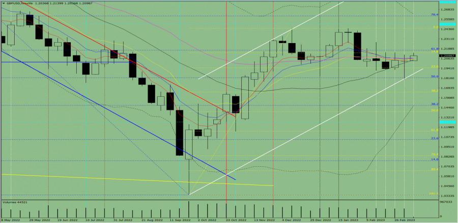Технический анализ на неделю, с 13 по 18 марта, валютная пара GBP/USDИнстаФорекс - Instaforex, 2 года назад Трендовый анализ. На этой неделе цена от уровня 1.2029 (закрытие последней недельной свечи) может продолжить движение вверх с целью 1.2446 – верхний фрактал (жёлтая пунктирная линия). При тестировании этого уровня, возможно, движение вверх продолжится с целью 1.2497 – исторический уровень сопротивления (голубая пунктирная линия). Рис. 1 (недельный график). Комплексный анализ: - индикаторный анализ – вверх; Вывод по комплексному анализу: восходящее движение. Общий итог расчёта свечи валютной пары GBP/USD по недельному графику: цена на неделе, вероятней всего, будет иметь восходящую тенденцию с отсутствием первой нижней тени у недельной белой свечи (понедельник – вверх) и наличием второй верхней тени (пятница – вниз). Цена от уровня 1.2029 (закрытие последней недельной свечи) может продолжить движение вверх с целью 1.2446 – верхний фрактал (жёлтая пунктирная линия). При тестировании этого уровня, возможно, движение вверх продолжится с целью 1.2497 – исторический уровень сопротивления (голубая пунктирная линия). Альтернативный сценарий: цена от уровня 1.2029 (закрытие последней недельной свечи) может продолжить движение вверх с целью 1.2446 – верхний фрактал (жёлтая пунктирная линия). При тестировании этого уровня возможно движение вниз с целью 1.2268 – верхний фрактал (недельная свеча от 12.02.2023 года). Материал предоставлен компанией InstaForex - www.instaforex.com |