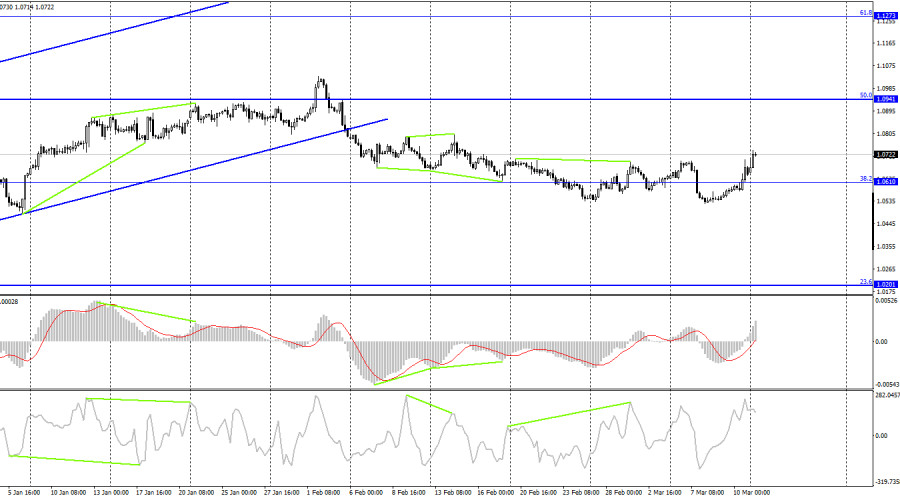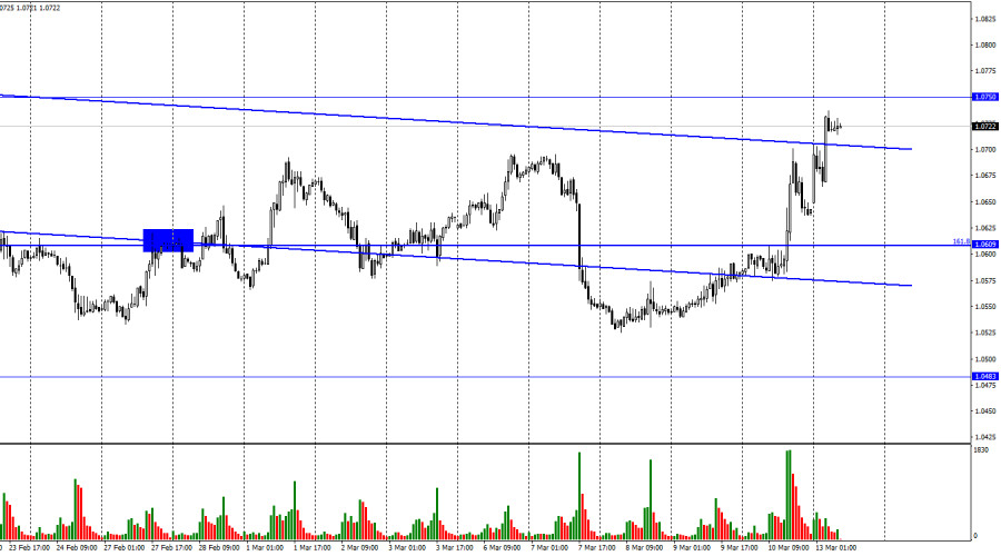 На последней отчетной неделе спекулянты закрыли 160 контрактов Long и 1322 контракта Short. Настроение крупных трейдеров остается «бычьим» и продолжает усиливаться. Однако обращу внимание, что последний доступный отчет – от 21 февраля. В феврале «бычье» настроение может быть и усиливалось, но как обстоят дела сейчас? Общее количество контрактов Long, сосредоточенных на руках спекулянтов, теперь составляет 236 тысяч, а контрактов Short – 71 тысячу. Европейская валюта уже несколько недель падает, но при этом свежих данных COT в нашем распоряжении нет. В последние несколько месяцев шансы на рост евровалюты постоянно росли, как и сама евровалюта, но информационный фон не всегда поддерживал именно ее. Ситуация продолжает оставаться благоприятной для евро после длительного «черного периода», поэтому ее перспективы остаются неплохими. По крайней мере, до тех пор, пока ЕЦБ повышает процентную ставку шагами по 0,50%. Календарь новостей для США и Евросоюза: 13 марта календари экономических событий Евросоюза и США не содержат в себе ни одной важной записи. Влияние информационного фона на настроение трейдеров сегодня будет отсутствовать. Прогноз по EUR/USD и советы трейдерам: Новые продажи пары можно открывать при отбое от уровня 1,0750 на часовом графике с целью 1,0609. Покупки евровалюты возможны при закрытии над уровнем 1,0750 с целью 1,0861 на часовом графике, но мне сейчас сложно поверить в дальнейший рост пары. Материал предоставлен компанией InstaForex - www.instaforex.com |