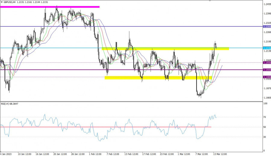 Горящий прогноз по GBP/USD от 14.03.2023ИнстаФорекс - Instaforex, 2 года назад Джозеф Байден вместо того чтобы успокоить рынки скорее еще больше их напугал. Ритуальные заявления о том, что все под контролем и вкладчикам не о чем беспокоится, без какой-либо конкретики ничего не значат. Но когда журналисты попытались задать уточняющие вопросы, Президент Соединенных Штатов молча покинул зал. А вопросов действительно много. Ведь еще в воскресенье Джанет Йеллен заявила об отсутствии планов спасения терпящих бедствие банков за государственный счет. По словам Министра финансов Соединенных Штатов это Федеральная Резервная Система предоставит банковской системе необходимую ликвидность. Более того, якобы даже клиенты имеющие вклады на сумму свыше той, что покрывается системой страхования вкладов. Каким образом все это будет работать, и откуда взять деньги? Ведь в таком случае речь идет даже не о миллиардах, а о триллионах долларов. Получается, что Федеральная Резервная Система должна будет просто напечатать деньги. При этом, если покрываться все будет не за государственный счет, то каким образом эти средства попадут в банковскую систему? Неужели банальной их раздачей нуждающимся финансовым институтам? Но по какому принципу и каков порядок их возврата? Да и как в таком случае быть со ставкой рефинансирования? Ведь инфляция все еще на невероятно высоком уровне. А в мире наблюдается постепенный отказ от доллара. Чего стоят только лишь санкции в отношении России, вынуждающие крупнейшего поставщика энергоносителей переходить на расчеты в других валютах. Это приводит к уменьшению доли доллара в международной торговле, и как следствие к снижению спроса на американскую валюту. В подобной ситуации, эмиссия денег будет оказывать более ощутимое влияние на инфляцию. Иными словами, даже на уровне тезисов, озвученные Джанет Йеллен планы, в случае их реализации, неминуемо приведут к росту инфляции, которую Федеральная Резервная Система пытается обуздать. Так что нет ничего удивительного в том, что доллар продолжил терять свои позиции. Однако, происходит это уже не так стремительно, как в пятницу. Инвесторов несколько успокаивает тот факт, что Администрация Президента Соединенных Штатов признает наличие проблемы и явно пытается найти какое-то решение. И учитывая озвученные еще в воскресенье идеи Джанет Йеллен резко повышают значение публикуемых сегодня данных по инфляции в Соединенных Штатах. Ведь инфляция может замедлиться с 6,4% до 6,1%. Если эти ожидания подтвердятся, то у Федеральной Резервной Системы будет больше пространства для маневра, и регулятор вполне возможно действительно сможет оказать финансовому сектору экстренную помощь, без катастрофических последствий. Но в любом случае речь идет как о замедлении темпов роста процентных ставок, и их скором снижении, так и об очередной итерации количественного смягчения. Все это будет оказывать на доллар негативное влияние, и способствовать его дальнейшему ослаблению. Инфляция (Соединенные Штаты): Валютной пары GBPUSD впервые с середины февраля оказалась выше уровня 1.2150. Этот шаг указывает на преобладающий интерес трейдеров к восходящего циклу, что сопровождается ростом объема длинных позиций. RSI H4 движется в зоне перекупленности, что указывает на перегрев длинных позиций во внутридневном периоде. R
