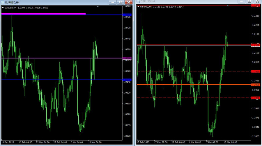 Торговый план по EUR/USD и GBP/USD на 14.03.2023ИнстаФорекс - Instaforex, 2 года назад Джозеф Байден вместо того чтобы успокоить рынки, скорее еще больше их напугал. Ритуальные заявления о том, что все под контролем и вкладчикам не о чем беспокоиться, без какой-либо конкретики ничего не значат. Но когда журналисты попытались задать уточняющие вопросы, президент Соединенных Штатов молча покинул зал. А вопросов действительно много. Ведь еще в воскресенье Джанет Йеллен заявила об отсутствии планов спасения терпящих бедствие банков за государственный счет. По словам Министра финансов Соединенных Штатов, это Федеральная Резервная Система предоставит банковской системе необходимую ликвидность. Более того, якобы даже на сумму свыше той, что покрывается системой страхования вкладов. Каким образом все это будет работать и откуда взять деньги? Ведь в таком случае речь идет даже не о миллиардах, а о триллионах долларов. Получается, что Федеральная Резервная Система должна будет просто напечатать деньги. При этом если покрываться все будет не за государственный счет, то каким образом эти средства попадут в банковскую систему? Неужели банальной их раздачей нуждающимся финансовым институтам? Но по какому принципу и каков порядок их возврата? Да и как в таком случае быть со ставкой рефинансирования? Ведь инфляция все еще на невероятно высоком уровне. А в мире наблюдается постепенный отказ от доллара. Чего стоят только лишь санкции в отношении России, вынуждающие крупнейшего поставщика энергоносителей переходить на расчеты в других валютах. Это приводит к уменьшению доли доллара в международной торговле и снижению спроса на американскую валюту. В подобной ситуации эмиссия денег будет оказывать более ощутимое влияние на инфляцию. Иными словами, даже на уровне тезисов озвученные Джанет Йеллен планы в случае их реализации неминуемо приведут к росту инфляции, которую Федеральная Резервная Система пытается обуздать. Так что нет ничего удивительного в том, что доллар продолжил терять свои позиции. Однако происходит это уже не так стремительно, как в пятницу. Инвесторов несколько успокаивает тот факт, что Администрация Президента Соединенных Штатов признает наличие проблемы и явно пытается найти какое-то решение. И учитывая озвученные еще в воскресенье идеи Джанет Йеллен, резко повышается значение публикуемых сегодня данных по инфляции в Соединенных Штатах. Ведь инфляция может замедлиться с 6,4% до 6,1%. Если эти ожидания подтвердятся, то у Федеральной Резервной Системы будет больше пространства для маневра и регулятор, вполне возможно, действительно сможет оказать финансовому сектору экстренную помощь, без катастрофических последствий. Но в любом случае речь идет как о замедлении темпов роста процентных ставок и их скором снижении, так и об очередной итерации количественного смягчения. Все это будет оказывать на доллар негативное влияние и способствовать его дальнейшему ослаблению. Инфляция (Соединенные Штаты): Курс евро по отношению к доллару США резко возрос и превысил отметку 1,0700. С точки зрения технического анализа это может стать сигналом о смене торговых интересов после спада в феврале. Если цена удержится выше 1,0800, это будет подтверждением восходящего тренда, но если нет, то возможен откат. Ситуация с валютной парой GBPUSD аналогична. Восходя