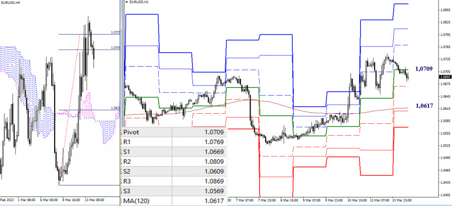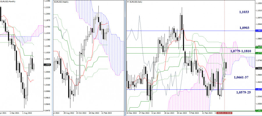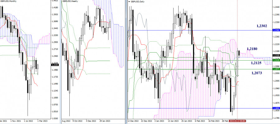 EUR/USD и GBP/USD 14 марта – технический анализ ситуацииИнстаФорекс - Instaforex, 2 года назад EUR/USD Старшие таймфреймы Новую неделю игроки на повышение начали с развития подъёма. На их пути сейчас можно выделить несколько важных рубежей, преодоление которых сформирует цели и позволит рассмотреть новые перспективы. Ближайшие сопротивления сейчас можно отметить на 1,0779 – 1,0810. Закрепление выше позволит выйти в бычью зону за пределы дневного и недельного облаков Ишимоку и сформировать повышательные цели на пробой облаков. Следующими ориентирами будут служить месячный среднесрочный тренд (1,0903) и ближайший максимальный экстремум (1,1033). Для возвращения медвежьих настроений ценность сейчас имеет переход на сторону игроков на понижение дневных уровней (1,0661 – 1,0637), а также пробой месячной поддержки (1,0579) и обновление минимального экстремума (1,0525). Н4 – Н1 На младших таймах игроки на повышение отработали цель на пробой облака Н4. Коррекция в этом случае явление закономерное. Пробой цели Н4 открывает дорогу к следующим повышательным ориентирам внутри дня – сопротивлениям классических Пивот-уровней (1,0769 – 1,0809 – 1,0869). Главным ориентиром при развитии коррекции сейчас служит поддержка недельной долгосрочной тенденции (1,0617). Пробой данного уровня способен повлиять на действующий баланс сил младших таймов и отдать основное преимущество игрокам на понижение. *** GBP/USD Старшие таймфреймы Игроки на повышение продолжают продвигаться всё выше, используя силу месячной поддержки (1,1842). Им удалось достаточно эффектно пройти многие значимые сопротивления. В результате они близки к выходу в бычью зону относительно дневного облака (1,2180), что позволит обозначить новую повышательную цель. Следующее сопротивление для игроков на повышение расположено на 1,2303 (месячный среднесрочный тренд). В случае возврата медведей предстоит снижение с проработкой достаточно широкой зоны, объединившей пройденные накануне уровни различных таймфреймов (1,2144 – 1,2125 – 1,2073 – 1,2035 – 1,2000 – 1,1980). Н4 – Н1 На младших таймах остался потенциал для роста в виде неотработанной цели на пробой облака Н4 (1,2218-64). Но цель будет отработана, только если пара справится с притяжением и влиянием дневного облака (1,2180). В случае развития сейчас коррекционного снижения в работу могут вступить следующие поддержки 1,2137 (центральный Пивот уровень) – 1,2075 (поддержка S1) – 1,1968 (недельная долгосрочная тенденция). *** При техническом анализе ситуации использованы: старшие таймфреймы – Ichimoku Kinko Hyo (9.26.52) + уровни Фибо Киджун; младшие таймфреймы – Н1 – Pivot Points (классические) + Moving Avarage 120 (недельная долгосрочная тенденция). Материал предоставлен компанией InstaForex - www.instaforex.com |