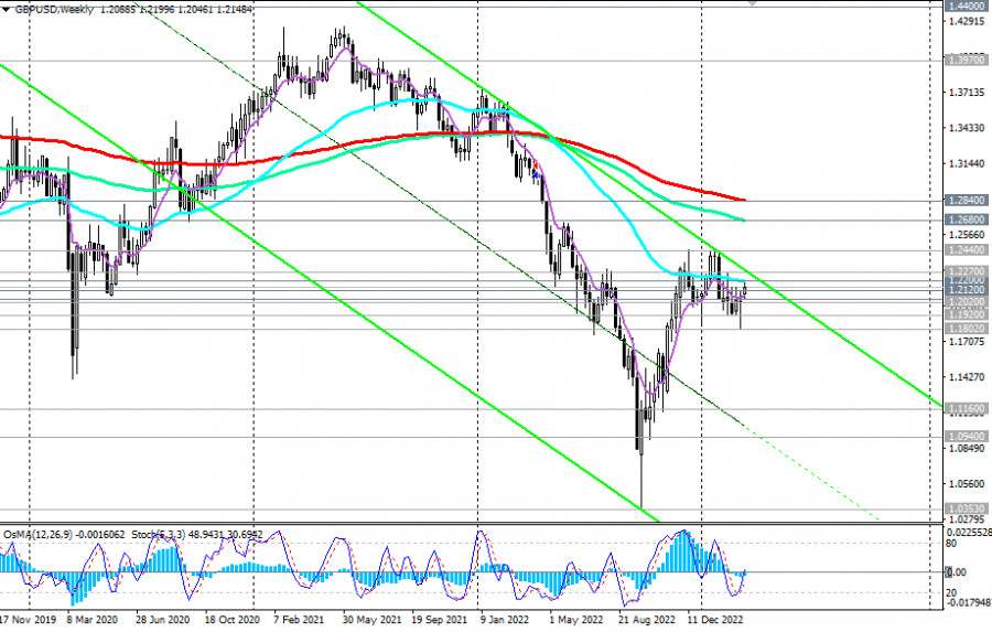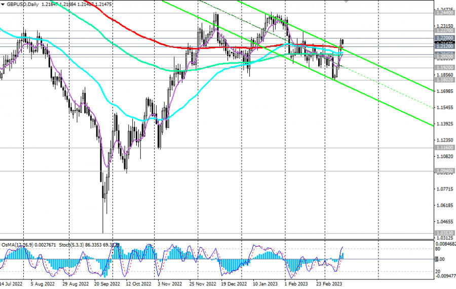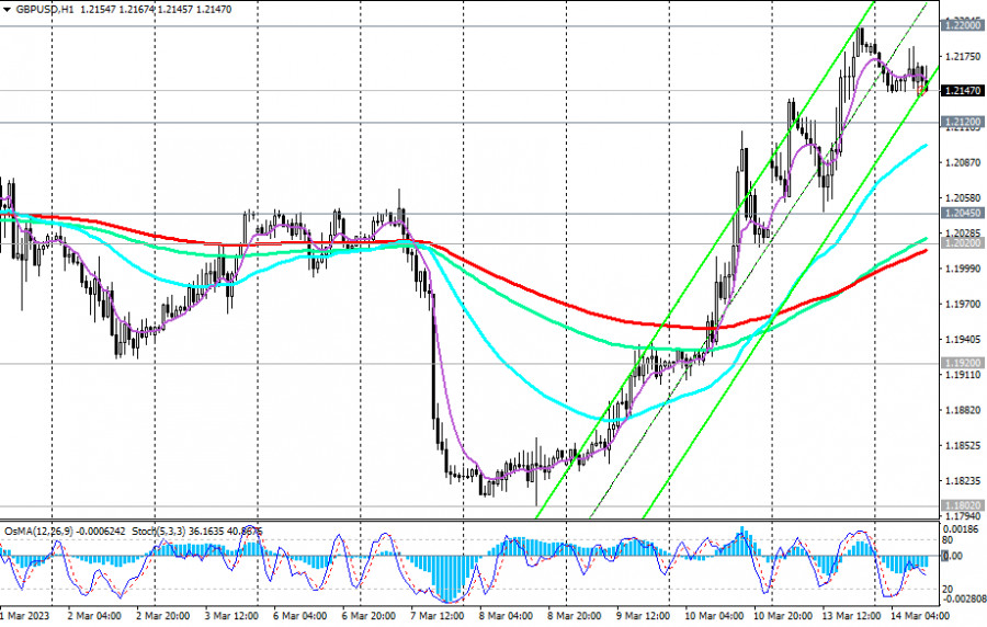 GBP/USD: сценарии динамики на 14.03.2023ИнстаФорекс - Instaforex, 2 года назад В феврале доллар нашел поддержку от сильных макроданных из США и после завершившегося заседания ФРС. Как известно, руководители американского ЦБ выразили готовность к дальнейшей борьбе с высокой инфляцией в США, все еще остающейся на уровнях 40-летней давности. В начале этого месяца укрепление доллара и снижение пары GBP/USD продолжилось. Однако разочаровавший участников рынка ежемесячный отчет Минтруда США с данными за февраль и события вокруг краха американских банков Silicon Valley Bank (SVB) и Signature Bank привели к резкому ослаблению доллара в конце прошлой и начале этой недели. Как мы отметили в нашем сегодняшнем «Фундаментальном анализе», GBP/USD достигла вчера локального 4-недельного максимума и уровня сопротивления 1.2200. Однако сегодня пара, как и большинство долларовых пар, снижается на фоне укрепления доллара. Экономисты считают, что не стоит ждать более сильного роста выше отметки 1.2200. Даже несмотря на банковский кризис в США, фунт остаётся уязвимым перед долларом, в том числе из-за разности позиций ЦБ США и Великобритании. Пробой отметки 1.2100 может стать отправной точкой в возобновлении нисходящей динамики. Самым же первым сигналом для возобновления коротких позиций может стать пробой сегодняшнего минимума 1.2140, а пробой важных уровней поддержки 1.2045 (ЕМА144 на дневном и 4-часовом графиках), 1.2020 (ЕМА200 на 1-часовом графике) – подтверждающим. В альтернативном сценарии в случае дальнейшего роста и после пробоя важного уровня сопротивления 1.2200 (ЕМА50 на недельном графике) GBP/USD направится в сторону ключевых уровней сопротивления 1.2680 (ЕМА144 на недельном графике), 1.2840 (ЕМА200 на недельном графике). Рост выше этих уровней пока что маловероятен, учитывая фундаментальный фон, складывающийся не в пользу фунта. *) об особенностях торговли GBP/USD см. в статье GBP/USD: валютная пара (характеристики, рекомендации) **) о важных событиях недели см. в Важнейшие экономические события недели 13.03.2023 – 19.03.2023 Уровни поддержки: 1.2140, 1.2120, 1.2100, 1.2045, 1.2020, 1.1920, 1.1900, 1.1842, 1.1160, 1.0940 Уровни сопротивления: 1.2200, 1.2270, 1.2300, 1.2400, 1.2440, 1.2500, 1.2600, 1.2680, 1.2700, 1.2800, 1.2840