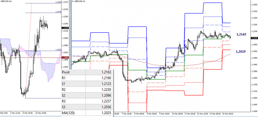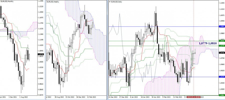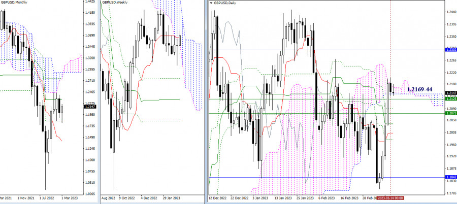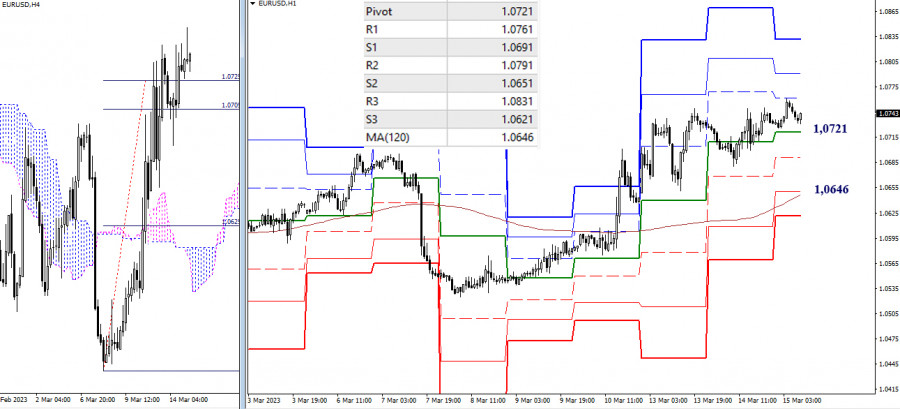 EUR/USD и GBP/USD 15 марта – технический анализ ситуацииИнстаФорекс - Instaforex, 2 года назад EUR/USD Старшие таймфреймы Ситуация не претерпела существенных изменений. Игроки на повышение обновили дневной максимум, но результативное продвижение пока отсутствует. Ближайшей важной зоной сопротивлений по-прежнему является 1,0779 – 1,0810 (верхняя граница дневного облака + недельные уровни). Поддержками служат пройденные накануне дневные уровни 1,0697 – 1,0665 – 1,0643-32. Н4 – Н1 Вчерашняя нисходящая коррекция завершилась обновлением максимума, но в настоящий момент на младших временных интервалах вновь наблюдаем коррекционное снижение. Ключевые ориентиры для развития нисходящей коррекции сегодня расположены на 1,0721 (центральный Пивот уровень дня) и 1,0646 (недельная долгосрочная тенденция), промежуточной поддержкой может послужить 1,0691 (S1 классических Пивот уровней). Если коррекционное снижение завершится, а подъём будет продолжен, то внутри дня в качестве ориентиров будут выступать сопротивления классических Пивот уровней, в настоящий момент их можно отметить на 1,0761 – 1,0791 – 1,0831. *** GBP/USD Старшие таймфреймы Продвижение игроков на повышение затормозило дневное облако Ишимоку (1,2169 – 1,2144). Если облако продолжит сдерживать усиление бычьих настроений, а игроки на понижение вернут себе недельные уровни (1,2125 – 1,2073), то пара вернётся в зону консолидации, что в свою очередь может вновь послужить остановкой в развитии направленного движения. Если игроки на повышение сумеют оттолкнуться от текущей поддержки дневного облака (1,2169 – 1,2144), то развитие подъёма будет направлено на тестирование и преодоление таких рубежей, как 1,2302 (месячный среднесрочный тренд) и 1,2147 (максимальный экстремум). Н4 – Н1 На данный момент развитие коррекционного снижения продолжается. Ситуация на младших временных интервалах изменилась не существенно. Центром притяжения сегодня служит центральный Пивот уровень дня (1,2163). В случае активности ориентирами внутри дня будут являться для игроков на понижение: классические Пивот уровни поддержки (1,2123 – 1,2096 – 1,2056) и недельная долгосрочная тенденция (1,2025); для игроков на повышение: сопротивления классических Пивот уровней (1,2190 – 1,2230 – 1,2257). *** При техническом анализе ситуации использованы: старшие таймфреймы – Ichimoku Kinko Hyo (9.26.52) + уровни Фибо Киджун; младшие таймфреймы – Н1 – Pivot Points (классические) + Moving Avarage 120 (недельная долгосрочная тенденция). Материал предоставлен компанией InstaForex - www.instaforex.com |