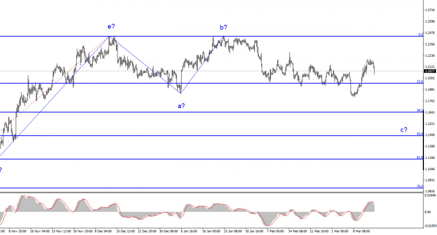 Анализ GBP/USD. 15 марта. Индекс цен производителей в США падает быстрыми темпами.ИнстаФорекс - Instaforex, 2 года назад По инструменту Фунт/Доллар волновая разметка на данный момент выглядит по-прежнему сложно, но не требует внесения уточнений. Наблюдаются определенные различия между волновыми разметками евро и фунта, но обе предполагают снижение. Мы имеем пяти волновой повышательный участок тренда, который принял вид a-b-c-d-e и, вероятно, уже завершен. Я предполагаю, что начал и продолжает свое построение понижательный участок тренда, который примет минимум трех волновой вид. Волна b приняла слишком протяженный вид, но все же не отменилась. Волна с тоже приняла слишком протяженный, незавершенный вид и усложняется. Проблема с этой волной заключается в том, что теперь она может завершиться в любой момент. Лоу волны a обновлен, поэтому волна с имеет возможность считаться завершенной. Я, конечно, жду более сильного снижения котировок британца, но следует отметить, что ожидания не всегда совпадают с реальностью. События конца прошлой недели могли и даже повлияли на участников рынка. Теперь построение волны с с целями, расположенными около 14-фигуры, находится под вопросом. Даже внутри самой волны с достаточно сложно выделить внутренние волны, чтобы понять, на какой стадии находится построение. Британец сопротивляется изо всех сил.Курс инструмента Фунт/Доллар в среду снизился на 60 базовых пунктов. В отличие от евровалюты фунт потерял всего лишь 60 пунктов, что дает мне основания предположить, что проблема кроется в завтрашнем заседании ЕЦБ. Тем не менее, спрос на британца тоже снижается, волновая разметка инструмента тоже предполагает снижение, а рынок в последние дни все новости интерпретировал не в пользу доллара, что очень странно выглядело. На мой взгляд, падение британца также очевидно, как и падение евровалюты. Я не вижу просто причин для такого сильного повышения, как мы наблюдали в последнюю неделю. Волна с может считаться завершенной, но в таком случае сейчас должно начаться построение нового повышательного участка тренда, а новостной фон не слишком сильно жалует валюту Великобритании. Сегодня новостной фон в Великобритании отсутствовал, но в США было несколько отчетов. На первое место я бы сразу поставил индекс цен производителей, который снизился в годовом выражении с 5,7% до 4,6%. Я считаю это очень позитивным сигналом к дальнейшему падению основной и базовой инфляции. Ведь очевидно, что сначала цены должны замедлиться у производителей, а уже потом на полках в магазинах. Однако спрос на валюту США вряд ли вырос из-за этого отчета, так как ей было бы выгоднее отсутствие замедления роста цен. Второй отчет – розничные продажи, объемы которых сократились в феврале на 0,4%. Исходя из полученных данных, я могу сделать однозначный вывод, что они не имеют никакого отношения к укреплению валюты США. Повышение доллара произошло либо на фоне негативных ожиданий рынка по завтрашнему заседанию ЕЦБ(евро потащил за собой вниз фунт), либо на основании волновой разметки. Общие выводы.Волновая картина инструмента Фунт/Доллар предполагает построение понижательного участка тренда. В данное время можно рассматривать продажи с целями, находящимися около отметки 1,1641, что приравнивается к 38,2% по Фибоначчи, по разворотам индикатора MACD «вниз». Ордер Стоп Лос