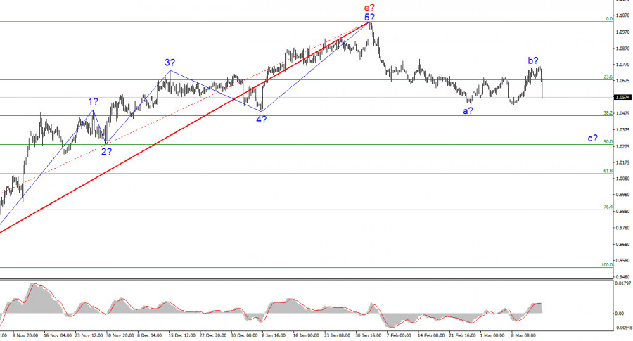 Экономисты уверены накануне заседания ЕЦБ, что ставки вырастут на 50 пунктовИнстаФорекс - Instaforex, 2 года назад События последних 6-7 дней полностью затмили наиболее важное событие текущей недели – заседание Европейского центрального банка, которое завершится завтра. Сначала были выступления Джерома Пауэлла в Конгрессе США, в ходе которых он успел чуть ли не пообещать повышение ставки на 50 базисных пунктов, а потом забрать свое обещание обратно, сказав, что еще ничего не решено. В пятницу рынок находился в шоковом состоянии от уровня безработицы в США, напрочь позабыв о другом не менее важном показателе – Nonfarm Payrolls. В субботу и воскресение рынок отдыхал, но уже в понедельник впал в новую панику из-за банкротства Silicon Valley Bank и Signature Bank в США. А сегодня – пришел в норму и трезво оценил наконец-то весь новостной фон, придя к выводу, что столь сильное снижение спроса на валюту США было нелогичным. Завтра состоится второе заседание ЕЦБ в этом году. О повышении ставки на 50 базисных пунктов рынок знает уже давно. Еще в январе члены ЕЦБ начали открыто заявлять о повышении на 125 пунктов на следующих трех заседаниях. Я даже не исключаю, что переменный рост инструмента в последние несколько недель был связан с отыгрышем этого решения, которое еще не озвучено. Однако инструменту Евро/Доллар нужно было построить коррекционную волну, чтобы потом иметь возможность возобновить снижение. Таким образом, никто не сомневается сейчас в том, что завтра ставка вырастет до 3,5%, но это решение уже давно отыграно рынком. А сейчас мы можем наблюдать вполне логичное явление для рынка, когда важное решение отыгрывается заранее – движение в обратном направлении. Ведь если подумать, то повышение ставки – это позитивный фактор для евро, поэтому спрос на него должен расти... Согласно с такой позицией и большинство экономистов, среди которых был проведен опрос Reuters. Все 60 опрошенных экономистов заявили, что в четверг ставка вырастет на 50 базисных пунктов. Также большинство экономистов считает, что регулятор осуществит в этом году еще три повышения на 25 базисных пунктов: в мае, июне и июле, что означает достижение пикового значения на уровне 4,25%. Также следует отметить, что примерно треть экономистов допускает, что ставка вырастет сильнее, чем ожидается сейчас, а еще треть считает, что слабее. И практически все опрошенные заявили, что существуют риски более значительного повышения процентной ставки. Эксперты также понизили свой прогноз по рецессии в 2023 году до вероятности 34%. Исходя из всего вышесказанного (отсутствие неожиданностей перед заседанием ЕЦБ), более важным событием завтра станет выступление президента Кристин Лагард. Именно к ее речи будет приковано внимание экономистов. Если последует ужесточение риторики или намеки на более сильное повышение ставки, спрос на евровалюту может вновь вырасти. Но я не жду такого сценария развития событий. Исходя из проведенного анализа, я делаю вывод, что построение восходящего участка тренда завершено. Таким образом, сейчас можно рассматривать продажи с целями, расположенными около расчетной отметки 1,0284, что соответствует 50,0% по Фибоначчи. В данное время еще может строится коррекционная волна 2 или b, в этом случае она примет более протяженный вид. Открывать продажи целесообразно теперь по сигналам MACD «вниз». Волновая ка