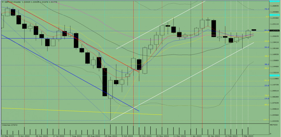 Технический анализ на неделю, с 20 по 26 марта, валютная пара GBP/USDИнстаФорекс - Instaforex, 2 года назад Трендовый анализ. На этой неделе цена от уровня 1.2176 (закрытие последней недельной свечи) может продолжить движение вверх с целью 1.2446 – верхний фрактал (жёлтая пунктирная линия). При тестировании этого уровня, возможно, движение вверх продолжится с целью 1.2499 – исторический уровень сопротивления (голубая пунктирная линия). Рис. 1 (недельный график). Комплексный анализ: - индикаторный анализ – вверх; Вывод по комплексному анализу: восходящее движение. Общий итог расчёта свечи валютной пары GBP/USD по недельному графику: цена на неделе, вероятней всего, будет иметь восходящую тенденцию с отсутствием первой нижней тени у недельной белой свечи (понедельник – вверх) и отсутствием второй верхней тени (пятница – вверх). Цена от уровня 1.2176 (закрытие последней недельной свечи) может продолжить движение вверх с целью 1.2446 – верхний фрактал (жёлтая пунктирная линия). При тестировании этого уровня, возможно, движение вверх продолжится с целью 1.2499 – исторический уровень сопротивления (голубая пунктирная линия). Альтернативный сценарий: цена от уровня 1.2176 (закрытие последней недельной свечи) может продолжить движение вверх с целью 1.2446 – верхний фрактал (жёлтая пунктирная линия). При тестировании этого уровня возможно движение вниз с целью 1.2268 – верхний фрактал (недельная свеча от 12.02.2023 года). Материал предоставлен компанией InstaForex - www.instaforex.com |