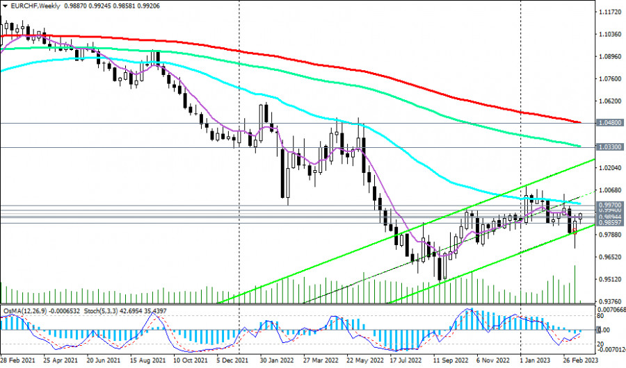 EUR/CHF: сценарии динамики на 20.03.2023ИнстаФорекс - Instaforex, 2 года назад Как мы отметили в нашем сегодняшнем «Фундаментальном анализе», в динамике EUR/CHF преобладает долгосрочный медвежий тренд. Хотя в среднесрочном плане пара стремится развить восходящую динамику на фоне слабеющего франка. Он, несмотря на его общепризнанный статус валюты-убежища, находится под давлением на фоне сохраняющейся неопределённости в финансовой системе Швейцарии и накануне заседания ЦБ страны. На момент публикации данной статьи пара торгуется вблизи отметки 0.9920, укрепляясь с локального многомесячного минимума 0.9705, достигнутого в минувшую среду на фоне кризиса в швейцарском Credit Suisse банке. EUR/CHF растет в сторону ключевых уровней сопротивления 0.9940 (ЕМА200 на дневном графике), 0.9970 (ЕМА50 на недельном графике), пробой которых будет означать прорыв в зону среднесрочного бычьего рынка. В альтернативном сценарии и в глобальном плане EUR/CHF остается в зоне долгосрочного медвежьего рынка, и пробой краткосрочного уровня поддержки 0.9860 (ЕМА200 на 1-часовом графике) может стать сигналом возрождения общего нисходящего тренда пары и для возобновления коротких позиций. В этом случае пара направится внутрь нисходящего канала на дневном графике, в сторону его нижней границы, проходящей ниже отметки 0.9700. Лишь пробой ключевых долгосрочных уровней сопротивления 1.0330 (ЕМА144 на недельном графике), 1.0480 (ЕМА200 на недельном графике) может вывести EUR/CHF в зону долгосрочного бычьего рынка. Рост в зону выше уровней сопротивления 1.2000, 1.2025 (ЕМА200 на месячном графике) подтвердит это предположение. Пока же ниже уровней сопротивления 0.9940, 0.9970 предпочтительными остаются короткие позиции. *) об особенностях торговли парой см. в EUR/CHF: валютная пара (характеристики, рекомендации) **) о важных событиях недели см. в Важнейшие экономические события недели 20.03.2023 – 26.03.2023 Уровни поддержки: 0.9905, 0.9895, 0.9860, 0.9800, 0.9700 Уровни сопротивления: 0.9940, 0.9970, 1.0000, 1.0100, 1.0200, 1.0300, 1.0330, 1.0400, 1.0480