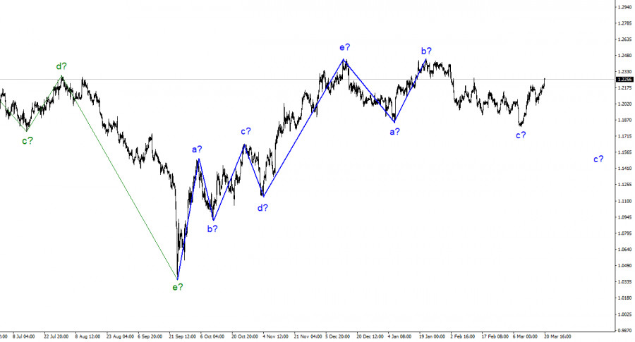 Анализ GBP/USD. 20 марта. Британец упорно не хочет снижатьсяИнстаФорекс - Instaforex, 2 года назад По инструменту Фунт/Доллар волновая разметка на данный момент выглядит по-прежнему сложно, но пока не требует внесения уточнений. Наблюдаются определенные различия между волновыми разметками евро и фунта, но обе предполагают снижение. Мы имеем пятиволновой повышательный участок тренда, который принял вид a-b-c-d-e и, вероятно, уже завершен. Я предполагаю, что начал и продолжает свое построение понижательный участок тренда, который примет минимум трехволновой вид. Волна с приняла протяженный вид и уже может быть завершена, так как хоть и на несколько пунктов, но инструмент опускался ниже лоу волны a. Я жду более сильного снижения котировок британца, но следует отметить, что ожидания не всегда совпадают с реальностью. Инструмент вполне может преобразовать понижательный участок тренда, берущий свое начало 13 декабря, в пятиволновой коррекционный, но он также может быть и уже завершен. Я ожидал и ожидаю более сильного снижения британца, потому что не вижу сейчас достаточных оснований для роста выше 24 фигуры. Доллар и фунт находятся в приблизительно равных условиях. От Банка Англии никто не ждет более агрессивных действий, чем от ФРС. Все это дает основания предположить, что в скором времени возобновится снижение. Возможно, в рамках волны e. Банк Англии готовится замедлить темпы повышения ставкиКурс инструмента Фунт/Доллар в понедельник повысился на 70 базовых пунктов, и лично мне было странно видеть такое движение сегодня. Начнем с того, что сегодня новостной фон отсутствовал в Великобритании и США. Безусловно, новость о слиянии UBS и Credit Suisse поддержала спрос на евровалюту. А евровалюта, в свою очередь, могла потянуть за собой вверх и фунт. Но все же британец повышается уже две недели, и все это время у него не было поддерживающего его новостного фона. На этой неделе пройдут заседания Банка Англии и ФРС, но разве кто-либо ожидает более «ястребиной» позиции британского регулятора, нежели американского? Хоть ФРС и не поднимет ставку на 50 базисных пунктов, как допускал Пауэлл, она все равно готова продолжать ужесточение любое количество времени. Банк Англии в это же время может замедлить темпы повышения ставки до 25 пунктов и сравняться по этому показателю с ФРС. У ФРС ставка выше и получается, что они далее будут расти одинаковыми темпами. Но ставка американского центрального банка выше, чем британского. Следовательно, если доллар сейчас и не имеет поддерживающего новостного фона, то британец тоже его не имеет. В конце прошлой недели все основные новости поступили из Евросоюза, а не из Британии или США. Экономические данные пятницы по розничной торговле нельзя считать настолько важными, чтобы падение спроса на доллар продолжалось и в понедельник. Следовательно, лично я делаю вывод, что британец сейчас не должен повышаться против доллара, и жду нового снижения котировок инструмента. Общие выводыВолновая картина инструмента Фунт/Доллар предполагает построение понижательного участка тренда. В данное время можно рассматривать продажи с целями, находящимися около отметки 1,1641, что приравнивается к 38,2% по Фибоначчи, по разворотам индикатора MACD «вниз». Ордер Стоп Лосс можно было выставить выше пиков волн e и b. Волна с может быть уже завершена, но в таком слу