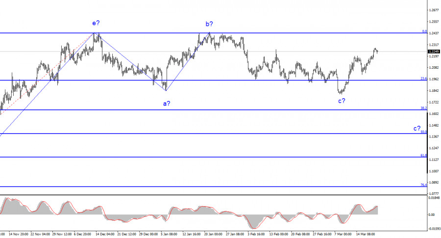 Кристин Лагард не считает проблемы банка Credit Suisse опасными для Евросоюза.ИнстаФорекс - Instaforex, 2 года назад Тему со швейцарским банком Credit Suisse пора закрывать. Банк сначала почти обанкротился, потом был спасен при помощи другого швейцарского банка UBS, затем выступила Кристин Лагард и сообщила, что проблемы одного банка не несут угрозы для экономики и всего банковского сектора Евросоюза. Сообщила она об этом в Европейском Парламенте, выступая на слушаниях в понедельник. Президент ЕЦБ высоко оценила реакцию швейцарских властей для нормализации обстановки в банковской сфере. Лагард также заявила, что в случае необходимости ЕЦБ готов реагировать для сохранения стабильности на рынках, но пока в этом нет никакой необходимости. Банковский рынок Еврозоны устойчив, показатели ликвидности – отличные. Помимо этого, Кристин Лагард призвала не сравнивать текущее положение вещей с ситуацией 2008 года. Стоимость кредитов остается на нормальном уровне, банковское регулирование значительно улучшено в сравнении с 2008 годом. Я могу сказать лишь то, что если не последует новых банкротств, то переживать действительно не о чем. Ситуация, конечно, неприятная, но Евросоюз быстро решил проблему. Если бы положение вещей было сложным, ставка в ЕС не выросла бы буквально на прошлой неделе на 50 базисных пунктов. Тогда уже было известно о том, что банк Credit Suisse может обанкротиться, но не было известно о его покупке банком UBS. То есть ситуация была гораздо более опасной, чем сейчас, но даже в том случае регулятор решился на ужесточение денежно-кредитной политики на 50 пунктов. Президент ЕЦБ также сообщила, что между инфляцией и финансовой стабильностью не может существовать компромисса. Это означает, что регулятор пока не готов жертвовать борьбой с инфляцией ради стимулирования экономики или решения проблем в банковском секторе. Безусловно, если ситуация ухудшится(некоторые аналитики уже предрекают новый финансовый кризис и «банкопад»), позиция ЕЦБ может измениться. В этом случае катализатором возможных действий ЕЦБ будет выступать ФРС, результаты заседания которой будут известны уже завтра. Если FOMC примет решение не повышать ставку, это может означать, что и ЕЦБ может последовать примеру в случае ухудшения ситуации в банковском секторе. Но сейчас делать подобные выводы нецелесообразно. Лучше просто дождаться итогов заседания FOMC. Я думаю, что повышение евро и фунта носит «сезонный» характер. В последнюю неделю новостной фон сложился таким, что у рынка были причины повышать спрос на эти валюты, одновременно снижая на доллар. Однако, чем больше проходит времени, тем меньше влияния оказывают на настроения рынка эти факторы. Британцу и вовсе нужно выдержать тройной экзамен в виде инфляции и двух заседаний центральных банков. И как он его сдаст, пока непонятно. Исходя из проведенного анализа, я делаю вывод, что построение восходящего участка тренда завершено. Таким образом, сейчас можно рассматривать продажи с целями, расположенными около расчетной отметки 1,0284, что соответствует 50,0% по Фибоначчи. В данное время еще может строится коррекционная волна 2 или b, в этом случае она примет более протяженный вид. Открывать продажи целесообразно теперь по сигналам MACD «вниз». Волновая картина инструмента Фунт/Доллар предполагает построение понижательного участка тре