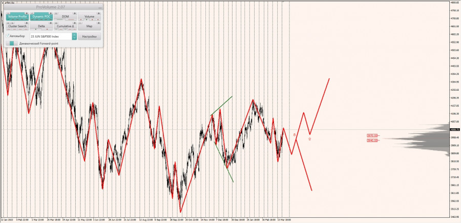 Альтернативный сценарий: при закреплении котировок индекса SNP500 ниже зоны 1/2 (3889.45) при откатах искать продажи по паттерну в новом диапазоне выгодных цен с целями: обновление минимумов и тестирование верхней границы НКЗ (3788.65).