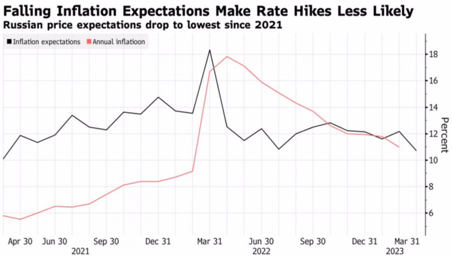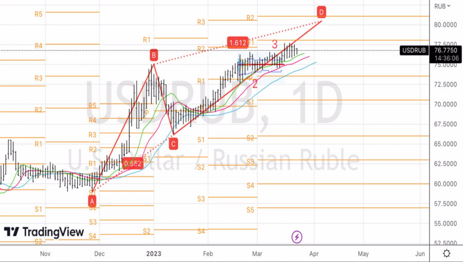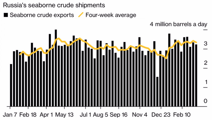 Рубль словит попутный ветер?ИнстаФорекс - Instaforex, 2 года назад Стабильность – признак класса. В случае с рублем, стабильность – признак изгоя. Котировки USDRUB застыли вблизи 76-77, оставляя без внимания серьезные потрясения на финансовых рынках из-за банковского кризиса и бурные колебания валют на Forex. «Медведей» по анализируемой паре нисколько не удивили намеки Банка России на возможное повышение ключевой ставки в будущем, несмотря на замедление инфляции и инфляционных ожиданий. Рубль по-прежнему зависит от потоков торгового характера, при этом внешний фон начинает создавать ему попутный ветер. Решение Банка России оставить ключевую ставку на отметке 7,5% четвертый раз подряд прогнозировалось всеми экспертами Bloomberg. Другое дело, что риторика Эльвиры Набиуллиной оказалась неожиданно «ястребиной». По ее словам, ускорение бюджетных расходов, ухудшение условий внешней торговли и ситуация на рынке труда продолжают создавать проинфляционные риски. Это может открыть дверь для ужесточения денежно-кредитной политики. Динамика инфляции и инфляционных ожиданий в России Несмотря на то, что UBS, Barclays и Morgan Stanley прогнозируют рост ключевой ставки, последний раз она повышалась после начала вооруженного конфликта в Украине и с тех пор снизилась на 125 б.п на 6 заседаниях центробанка. На рынке усиливается мнение, что стоимость заимствований останется на прежнем уровне или даже упадет с целью стимулирования чахнущей экономики. Согласно прогнозу ОЭСР, российский ВВП сократится на 2,5% в 2023 и на 0,5% в 2024. На бумаге намеки Банка России на повышение ставки в будущем и заявление ФРС о скором окончании цикла монетарной рестрикции создают эффект дивергенции, благоприятный для продавцов USDRUB. Доллар действительно серьезно ослаб против основных мировых валют после того, как FOMC не изменила прогнозы по ставке по федеральным фондам, а Джером Пауэлл намекнул, что ее мартовское повышение на 25 б.п до 5% может стать последним. Это обстоятельство вкупе с постепенной стабилизацией ситуации в банковской системе, что снижает риски рецессии, способствуют росту нефти. Для России и ее валюты это более позитивная новость, чем ослабление доллара США. За 12 месяцев до февраля поставки нефти в Китай выросли до $88 млрд по сравнению с $57 млрд за предыдущий годовой период. За неделю к 17 марта экспорт российской нефти по морю незначительно сократился на 90 тыс б/с до 3,23 млн б/с. Динамика морских поставок российской нефти В целом показатель находится на стабильно высоком уровне, что позволяет Москве получать валютную выручку и способствует консолидации USDRUB. Тем более, что Россия намерена поддерживать сокращение добычи на 5% до июня, что оказывает поддержку нефти и рублю. Технически таргет на 161,8% по паттерну AB=CD никто не отменял, однако путь к нему, вероятнее всего, окажется более тернистым, чем ранее предполагалось. При этом падение котировок USDRUB ниже справедливой стоимости на 75,15 усилит риски отката и станет основанием для краткосрочных продаж. Материал предоставлен компанией InstaForex - www.instaforex.com |