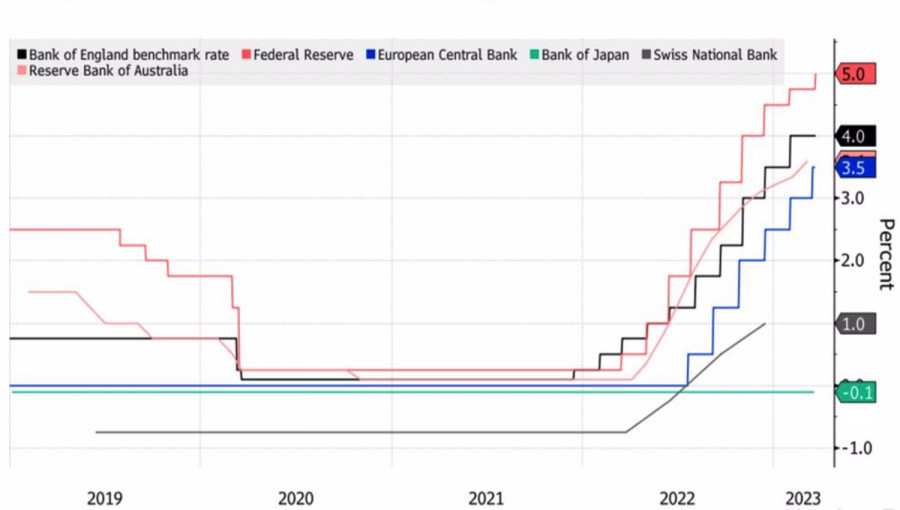 Евро притормозил конейИнстаФорекс - Instaforex, 2 года назад Банковский кризис выполнил за ФРС часть работы. Даже Джером Пауэлл признал, что серия банкротств оказывает на экономику тот же эффект, что и повышение ставки по федеральным фондам. Финансовые условия ужесточаются, объемы кредитования снижаются, ВВП замедляется, а инфляция охлаждается. Таким образом, трещины в банковской системе позволяют Федрезерву приблизиться к финишной черте в процессе монетарной рестрикции. И это обстоятельство вдохновило «быков» по EURUSD на атаку. Близость ставки по федеральным фондам к своему пику – свидетельство, что лучшие деньки доллара США остались позади. Несмотря на то, что Джером Пауэлл несколько раз подчеркнул, что ослабления денежно-кредитной политики в 2023 не будет, срочный рынок закладывает ожидания снижения стоимости заимствований на 65 б.п. В таких условиях наибольшую выгоду обычно извлекают те валюты, центробанки-эмитенты которых не думают прекращать монетарную рестрикцию. Например, фунт благодаря повышению ставки РЕПО до 4,25% на фоне неожиданного всплеска инфляции. Динамика ставок центробанков То же самое справедливо и для евро. Чиновники ЕЦБ сохраняют «ястребиную» риторику, что повышает предполагаемый потолок стоимости заимствований с 3,2% до 3,5%. И это еще не предел. Президент Бундесбанка Йоахим Нагель считает, что еврозона должна быть настойчивой и продолжать цикл ужесточения денежно-кредитной политики для борьбы с инфляцией. Она еще не закончена. Если Европейский центробанк хочет укротить эти упрямо высокие цены, он должен быть еще более упрямым. Глава ЕЦБ Кристин Лагард заявила, что последствия монетарной рестрикции только начинают отражаться на экономике валютного блока, а признаки, что инфляция сохранится на высоком уровне заставляют Европейского регулятора как можно быстрее повысить стоимость заимствований до ограничительного уровня. Таким образом, экономика США под воздействием банковского кризиса рискует продолжить охлаждаться, ФРС взвешивает, стоит ли прекратить цикл ужесточения денежно-кредитной политики или сделать еще один шаг на 25 б.п, а ЕЦБ сохраняет решительность на фоне большей устойчивости европейской банковской системы по сравнению с американской. Почему бы в таких условиях не расти EURUSD? Что может остановить поклонников евро? Неужели холодная погода в Старом Свете, приход которой в недавнем прошлом ассоциировали с энергетическим кризисом. Динамика температур в Европе Не думаю, что этот фактор весной будет иметь такое же сильное влияние как зимой. В конечном итоге речь идет о разных температурах. Евро, скорее всего, испугался собственной прыти, и некоторые «быки» по основной валютной паре предпочли зафиксировать прибыль по длинным позициям после бурного ралли EURUSD. Но это не говорит о том, что оно закончилось. Технически первый таргет на $1,089 по лонгам был очень быстро выполнен. Откат предоставляет прекрасную возможность, чтобы увеличить покупки евро в направлении $1,103. Материал предоставлен компанией InstaForex - www.instaforex.com |