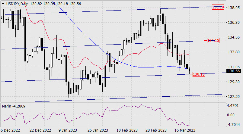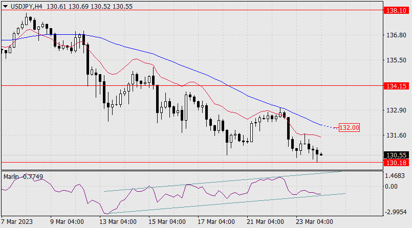 Прогноз по USD/JPY на 24 марта 2023 годаИнстаФорекс - Instaforex, 2 года назад Утром сегодняшнего дня цена достигла целевой поддержки по вложенной линии ценового гиперканала месячного таймфрейма на отметке 130.18. Для достижения этой цели цене даже пришлось продавить поддержку индикаторной линии Крузенштерна. Теперь, если цена вернётся над эту линию, цена с радостью вернётся к восходящей тенденции – нисходящая коррекция от движения 16 января-8 марта была очень глубокой, более 62%. Сигнальная линия осциллятора Марлин дневного масштаба снизилась к текущим уровням по замедляющейся дуге и разворачивается вверх. Целью роста доллара против йены станет верхняя линия вложенного ценового канала 134.15. На графике Н4 осциллятор Марлин развивается в восходящем канале против понижающейся цены. На текущий момент сигнальная линия осциллятора у нижней границы этого канала, возможен и разворот вверх цены. Подтверждением разворота станет выход цены над линию Крузенштерна в районе отметки 132.00. Уход цены под 130.18 с наибольшей вероятностью станет ложным движением. |