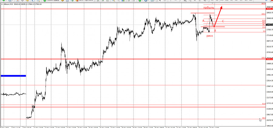 Торговая идея по BitcoinИнстаФорекс - Instaforex, 2 года назад Добрый день, уважаемые трейдеры! Представляю вашему вниманию торговую идею по Bitcoin. Итак, выступление Пауэлла привело шортовой коррекции курса Биткоина, но уже сегодня на американской сессии котировки главной криптомонеты резко пошли на верх, породив хороший лонговый импульс, который может дать третью лонговую волну. Предлагаем торговую идею на повышение по следующей схеме: Фактически имеем трёхволновую структуру "АВС", где волной "А" выступает лонговая инициатива американской сессии. |