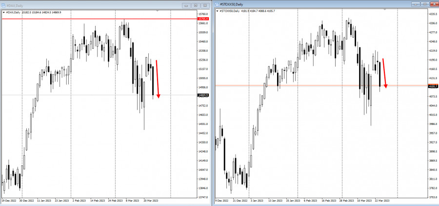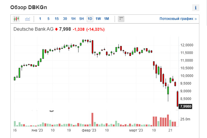 Deutsche Bank тянет на дно фондовые индексыИнстаФорекс - Instaforex, 2 года назад Фьючерсы на американские акции стерли ранее достигнутый рост, а банки возглавили падение европейских акций, так как опасения по поводу стабильности сектора охватили трейдеров перед выходными. Когда на рынках распространилось нежелание рисковать, облигации и доллар выросли. Европейские фондовые индексы ускорили падение: Индекс Stoxx Europe 600 снижается второй день подряд, так как индикатор банков свел на нет последние достижения с начала недели. Deutsche Bank AG упал на 15%, что стало максимальным с первых дней пандемии в марте 2020 года. Контракты на S&P 500 упали на 0,7%, а контракты на Nasdaq 100 упали на 0,4% после того, как базовый индикатор приблизился к порогу бычьего рынка в четверг. Акции UBS Group AG упали после того, как агентство Bloomberg сообщило, что это один из банков, находящихся под пристальным вниманием Министерства юстиции США по делу о том, помогали ли финансовые специалисты российским олигархам уклоняться от санкций, сообщают источники, знакомые с этим вопросом. Трейдеры по-прежнему опасались проблем, которые накопились в банковском секторе во время цикла быстрого роста Федеральной резервной системы. Кредиторы США упали в четверг даже после того, как министр финансов Джанет Йеллен заявила законодателям, что готова к дальнейшим шагам по защите депозитов, если это необходимо. Показатель финансовых тяжеловесов США упал до самого низкого уровня с ноября 2020 года. «Доверие хрупко, волатильность рынка, вероятно, останется высокой, и политикам, возможно, придется пойти еще дальше, чтобы убедиться, что вера в мировую финансовую систему остается прочной, — сказал Марк Хефеле, главный инвестиционный директор UBS Wealth Management. — Финансовые условия также, вероятно, ужесточатся, что увеличивает риск жесткой посадки для экономики, даже если центральные банки ослабят повышение процентных ставок».