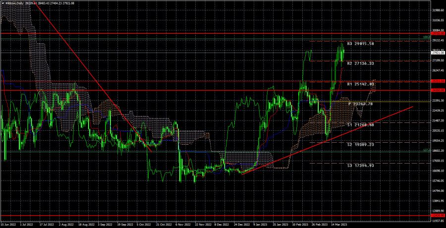 Биткоин удержался от падения после заседания ФРС.ИнстаФорекс - Instaforex, 2 года назад Криптовалюта биткоин за последние несколько дней выросла до отметки 29 000$, недалеко от которой и остается на данный момент. Техническая картина совершенно не изменилась за последние дни, хотя фундаментальный фон последних двух недель был сумасшедший. Отчасти благодаря ему биткоин и вырос в цене, хоть это может быть и неочевидно для многих трейдеров. Однако, обо всем по порядку. Новая восходящая линия тренда поддерживает теперь торгующих на повышение, но, как мы уже говорили, цена приближается к уровню 29 750$, который выступает ближайшим целевым уровнем. Поэтому для дальнейшего роста требуется преодоление оного. На этой неделе состоялись заседания ФРС и Банка Англии. Британский регулятор не слишком сильно интересовал криптовалютный рынок, но вот ФРС... другое дело. Несколько месяцев назад мы говорили, что биткоин получит теоретические шансы на рост, когда ФРС будет приближаться к моменту завершения цикла ужесточения монетарной политики. В реальности рост биткоина начался еще раньше. Сначала его спровоцировало резкое падение инфляции в США(еще в январе), потом – банковский кризис в США, который вынудил ФРС начинать новую программу стимулирования экономики на 300 млрд долларов. Подразумевается, что эти деньги будут просто напечатаны, вновь раздувая денежную массу. Соответственно, эти деньги должно будут хотя бы частично осесть на каком-то из рынков. Почему бы не на криптовалютном? Ожидая нового роста биткоина и на фоне падения доллара США, трейдеры кинулись покупать. Также сыграло свою роль и заявление Джерома Пауэлла о том, что в ближайшее время ключевая ставка ФРС может завершить цикл повышения. Поэтому только две недели назад появились реальные основания покупать первую криптовалюту. Но получается так, что эти факторы уже отработаны. Теперь ставка ФРС будет долгое время оставаться высокой, поэтому мы по-прежнему не видим оснований для нового роста биткоина. Тот рост, который мы допускали, уже произошел. Однако никогда не стоит забывать о непредвиденном фундаментальном фоне. Вряд ли кто-либо мог предугадать крах трех банков в США. И кто сказал, что это последние банкротства? Новые потрясения для мировой финансовой системы вполне могут спровоцировать новое укрепление «битка». Поэтому готовыми нужно быть к любому варианту развития событий. И, конечно, не забывать про технический анализ, который лучше всего визуализирует происходящее на рынке. На 24-часовом таймфрейме биткоин преодолел важный уровень 25 211$, поэтому трейдеры могли открывать покупки в этом моменте. Теперь их можно удерживать с целью 29 750$. Отскок от этого уровня – возможны продажи, так как инструмент должен хотя бы немного скорректироваться после роста еще на 30%. Преодоление 29 750$ - открываем новые покупки или удерживаем старые с целью 34 267$. Материал предоставлен компанией InstaForex - www.instaforex.com |
