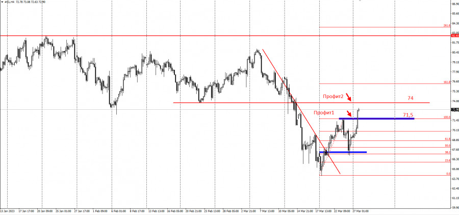 Нефть - фиксируем часть лонгов с прибылью!ИнстаФорекс - Instaforex, 2 года назад Добрый день, уважаемые трейдеры! Представляю вашему вниманию отработку торговой идеи по нефти. Итак, 24 марта мы давали торговую идею на рост нефти WTI по следующей схеме: На сегодняшний день нефть прошла первое сопротивление 71,5: Предлагаем зафиксировать часть лонговых позиций с профитом!. Поздравляем тех, кто воспользовался нашей торговой идеей! Средний проход составил 5$. Торговая идея представлена в рамках метода "Price Action" и "Охота за стопами". |