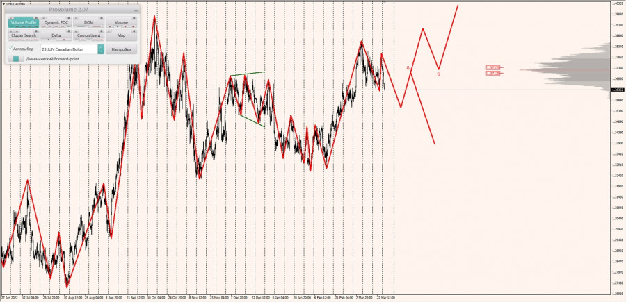 Долгосрочная тенденция: в шорт. Максимальное скопление объемов текущего контракта расположено в диапазоне по котировкам 1.37120-1.37370. В настоящий момент по паре совершаются инвестиционные операции ниже, указывая на силу продавцов.
