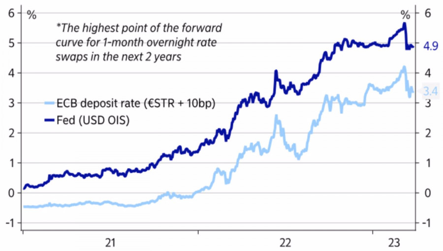 Доллар все сделает самИнстаФорекс - Instaforex, 2 года назад Хочешь сделать дело хорошо – сделай его сам. В настоящее время на финансовых рынках доминирует мысль, что банковский кризис сделал за ФРС часть работы по возвращению инфляции к таргету в 2%. Дескать, условия кредитования ужесточатся, кредитов будет меньше, экономика замедлится, цены упадут. В результате у Центробанка не будет необходимости повышать ставки. Цикл ужесточения денежно-кредитной политики закончен, доллару США приказано падать. Так ли это на самом деле? Несмотря на замедление американской инфляции в годовом исчислении, что может быть связано с эффектом высокой базы, в месячном потребительские цены продолжают уверенно расти. Эксперты Bloomberg ожидают от индекса расходов на личное потребление расширения на 0,5-0,6% м/м в феврале, так что говорить, что работа Федрезерва сделана, рановато. Скорее всего, события будут развиваться по другому сценарию: уход с первых полос СМИ темы банковского кризиса вернет интерес инвесторов к инфляции и заставит ФРС продолжить цикл монетарной рестрикции. Nordea Markets ожидает от нее повышения стоимости заимствований еще на 50 б.п. на двух заседаниях FOMC и сохранения ее на пиковых уровнях до конца 2023. Следовательно, текущие прогнозы срочного рынка, что ставка по федеральным фондам закончит год на отметке 4,9%, выглядят заниженными. Тем хуже для «быков» по EURUSD. Динамика ожиданий пика ставок ФРС и ЕЦБ Интерес к доллару США способен вернуться на фоне ухода в тень темы банковского кризиса. Однако в любой паре всегда две валюты. И позиция ЕЦБ выглядит куда более «ястребиной», чем у его коллег из Вашингтона. Действительно, несмотря на прогнозируемое экспертами Bloomberg снижение темпов роста потребительских цен в еврозоне до 7,3% в марте, базовая инфляция способна отметиться новым рекордом. Для Европейского центробанка приоритеты в политике очевидны – он должен поставить на колени инфляцию. Поэтому рост ставки по депозитам еще на 75-100 б.п. выглядит более чем логичным. Речь идет о 4%, что на 60 б.п. выше, чем в настоящее время ожидает срочный рынок. У ЕЦБ путь дальше, чем у ФРС, а если так, то основная валютная пара имеет неплохие шансы продолжить ралли. Тем более что дифференциал чувствительных к ставкам процентных свопов сигнализирует о серьезной недооценке EURSUD. Динамика EURUSD и дифференциала свопов Согласно этому показателю, евро должен котироваться на уровне $1,17. Любопытно, что в последний раз такой же разрыв в доходности американских и немецких облигаций, как сейчас, имел место, когда региональная валюта стоила $1,21. Таким образом, потенциал ралли основной валютной пары далеко не исчерпан. Технически на дневном графике EURUSD продолжается процесс восстановления восходящего тренда. Необходимым условием выполнения поставленного ранее таргета по лонгам на 1,103 является уверенный прорыв сопротивления на 1,089. Здесь расположен важный пивот-уровень. Его преодоление снизит риски активации разворотного паттерна 1-2-3. Материал предоставлен компанией InstaForex - www.instaforex.com |
