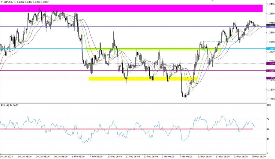 Горящий прогноз по GBP/USD от 30.03.2023ИнстаФорекс - Instaforex, 2 года назад В том, что рынок банально стоял на месте нет ничего удивительного, так как макроэкономический календарь вчера был совершенно пустым. В общем-то как и сегодня. Конечно, публикуются данные по заявкам на пособия по безработице в Соединенных Штатах, но изменения должны носить сугубо символический характер. В частности, как число первичных, так и повторных обращений должно возрасти на 3 тыс. Это крайне незначительный рост, не способный повлиять на ситуацию. Тоже самое по сути дела справедливо и в отношении данных по ВВП Соединенных Штатов, которые должны лишь подтвердить предыдущие предварительные оценки, показавшие замедление темпов экономического роста с 1,9% до 0,9%. Но этот факт давно уже рынком учтен. Так что рынок скорее всего продолжит консолидироваться в ожидании завтрашней публикации данных по инфляции в зоне евро, которые являются самым значимым событием текущей недели. Изменение ВВП (Соединенные Штаты): Фунт стерлингов по отношению к доллару США незначительно откатился после обновления локального максимума недели. В качестве опоры служит ранее пройденный уровень 1.2300 относительно которого возникло сокращение объема коротких позиций. Технический инструмент RSI H4 и D1 движется в верхней области индикатора 50/70, что указывает на сохраняющийся восходящий настрой среди участников рынка. Скользящие линии MA на Alligator H4 и D1 направлены вверх, что соответствует направлению движению цены. Ожидания и перспективы Стабильное удержания цены выше диапазона 1.2300/1.2350 с высокой доли вероятно приведет к последующему росту. При этом сценарии допускается движение по направлению локального максимума среднесрочного восходящего тренда. Однако стоит отметить, что возвращение цены ниже уровня 1.2300 в дневном периоде может привести к более значительному снижению, по сравнению с действующий откат. Комплексный индикаторный анализ в краткосрочном периоде ориентирован на откат. В то время как во внутридневном периоде индикаторы указывают на восходящий цикл. Материал предоставлен компанией InstaForex - www.instaforex.com |