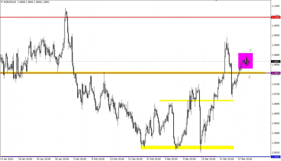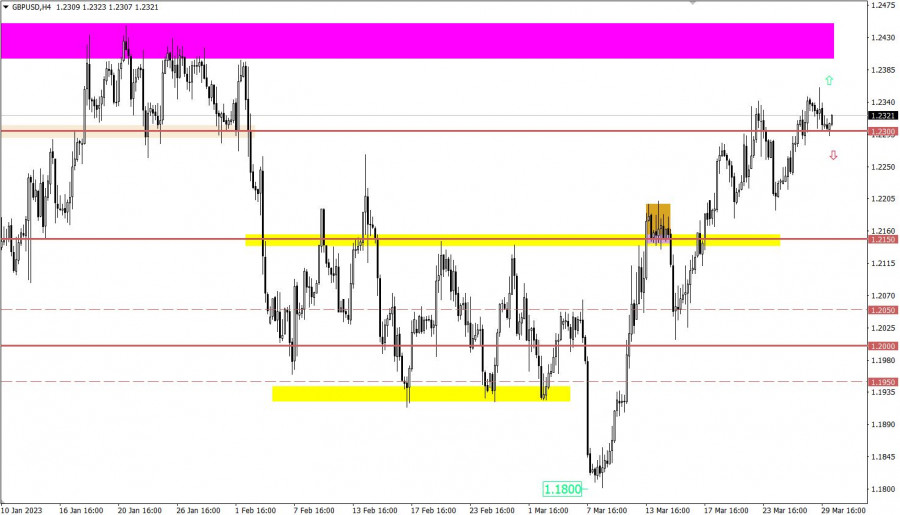 Учимся и анализируем, торговый план для начинающих трейдеров EURUSD и GBPUSD 30.03.23ИнстаФорекс - Instaforex, 2 года назад Детали экономического календаря от 29 марта Данные по рынку кредитования Великобритании вышли не самым лучшим образом. Число одобренных ипотечных кредитов в период февраля составило 43,5 тыс., что немного выше, чем в прошлом месяце, когда было одобрено 39,6 тыс. Это единственный положительный момент в отчете. Объем ипотечного кредитования снизился до 0,74 млрд фунтов стерлингов в сравнении с 2,0 млрд фунтов стерлингов в предыдущем месяце. Объем потребительского кредитования также снизился до 1,4 млрд фунтов стерлингов по сравнению с 1,6 млрд фунтов стерлингов. Объем чистых займов частным лицам также сократился. Стоит отметить, что ипотечное кредитование напрямую связано с рынком недвижимости, который является важным сектором британской экономики. В период американской торговой сессии был опубликован индекс незавершенных продаж на рынке недвижимости США за февраль, который вырос на 0,8% при прогнозе спада на 2,3%. Разбор торговых графиков от 29 мартаРост евро по отношению к доллару замедлился при достижении значения 1.0870, что привело к появлению застоя на рынке. В результате был сформирован диапазон консолидации в 50 пунктов. Возможно, что текущее замедление является процессом накопления торговых сил, который приведет к ускорению рынка в будущем. Фунт стерлингов по отношению к доллару США незначительно откатился после достижения локального максимума недели. Уровень 1.2300 стал опорой для рынка, именно относительно него наблюдалось сокращение объема коротких позиций. Экономический календарь на 30 мартаСегодня ожидается публикация еженедельных данных по заявкам на пособие по безработице в Соединенных Штатах, где прогнозируют что их общий показатель вырастет. Это негативный фактор для рынка труда США. Детали статистических данных: Объем повторных заявок на пособие может увеличиться с 1 694 тыс. до 1 697 тыс. Объем первичных заявок на пособие может увеличиться с 191 тыс. до 196 тыс. Немаловажным моментом станет публикация данных по ВВП Соединенных Штатах, где ожидают замедления темпа роста экономики с 1,9% до 0,9%. Однако мы имеем дело с итоговыми показателями, т.е. они уже учтены в цене. Тем самым в случае их совпадения с фактическими данными никакой реакции не возникнет на рынке. Временной таргетинг Заявки на пособие по безработице в США – 16:30 по МСК ВВП в США – 16:30 по МСК Торговый план – ЕВРО/ДОЛЛАР 30 мартаНаиболее оптимальной тактикой является метод исходящего импульса из текущего диапазона застоя, который составляет 1.0720/1.0870. Этот метод может привести к возникновению технического сигнала о последующем направлении рынка. В случае если цена удерживается выше уровня 1.0870, возможен восходящий сценарий, который предполагает продолжение текущего цикла. В этом случае трейдеры ожидают достижения максимума прошлой недели. Если же цена начнет снижаться, возможен нисходящий сценарий, который приведет к понижению цены ниже уровня 1.0800. Торговый план – ФУНТ/ДОЛЛАР 30 мартаЕсли цена будет удерживаться стабильно выше диапазона 1.2300/1.2350, то с высокой вероятностью она продолжит расти в будущем. В этом случае возможно движение цены в направлении локального максимума среднесрочного восходящего тренда. Однако следует отметить, что если цена вернется ниж